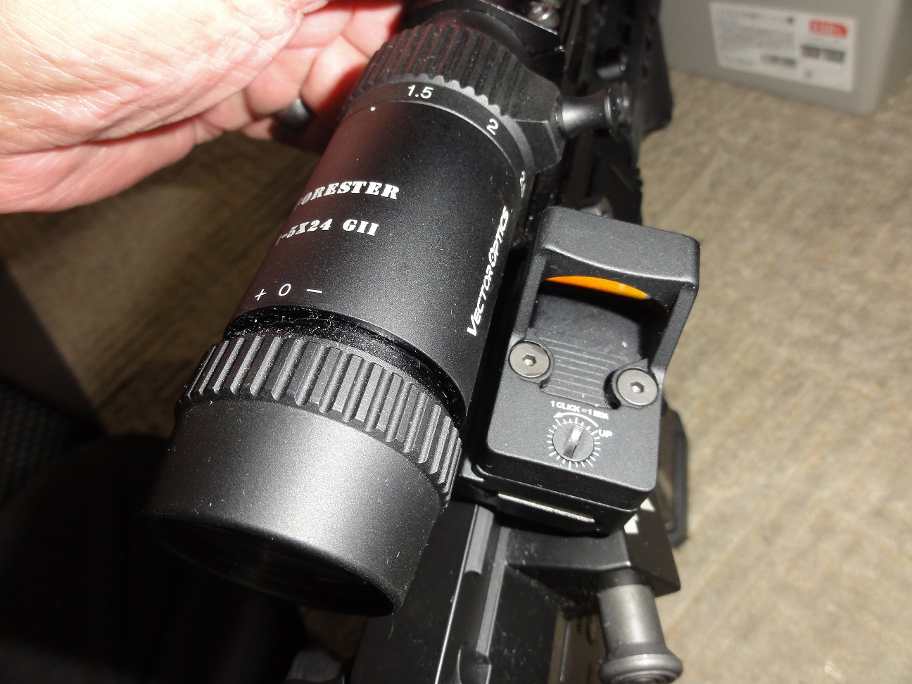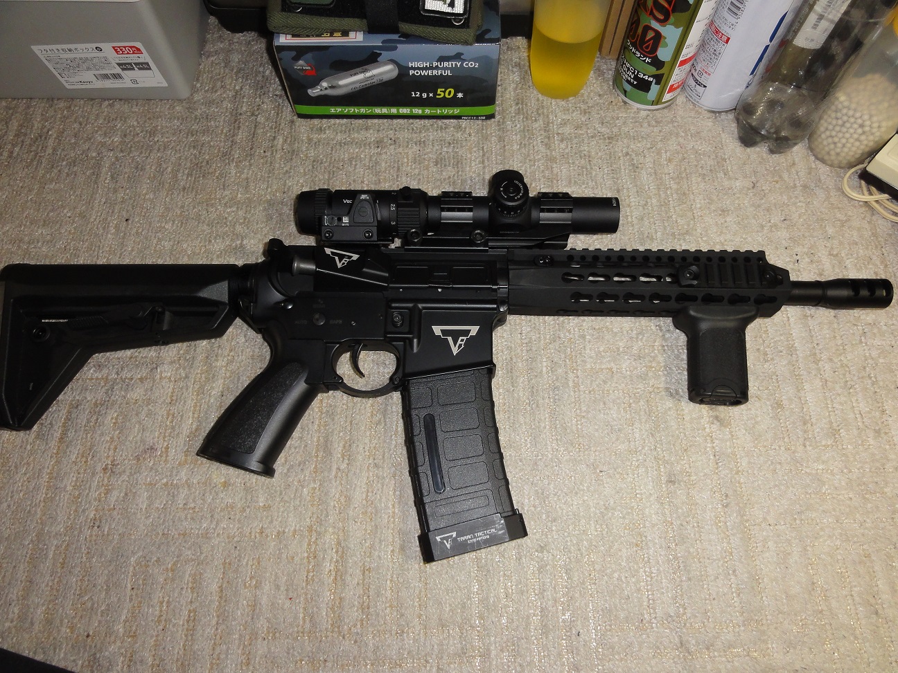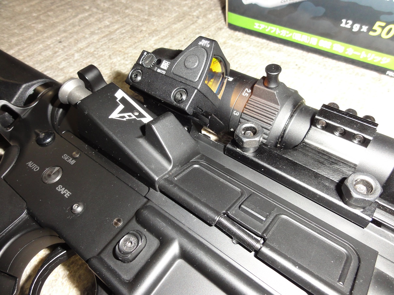 スコープはちょいと異なるがオフセットにマウントしたドットサイトはトリジンコピーモデル