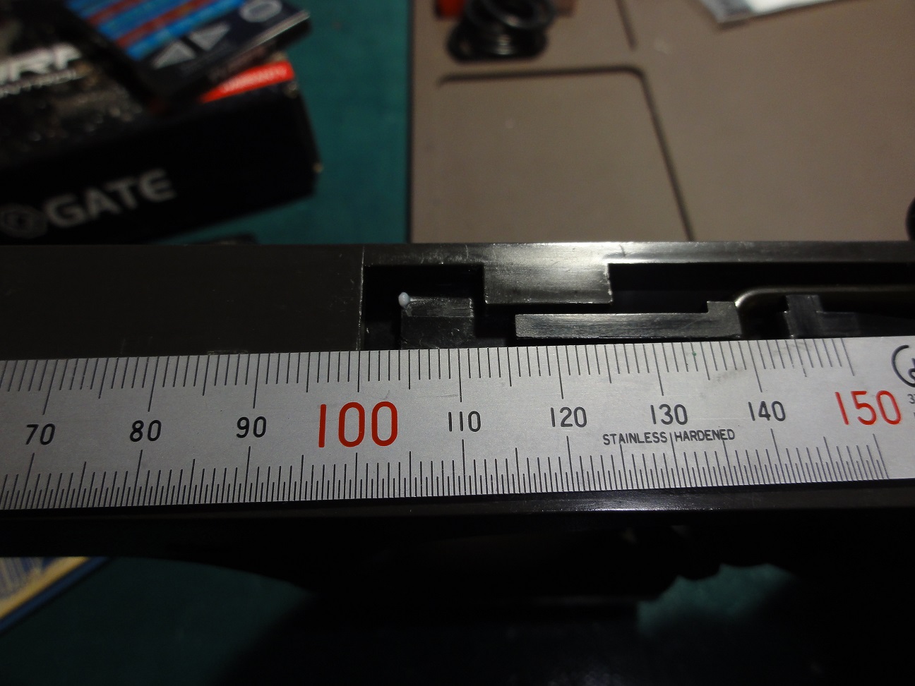 トリガーストップはガイド溝の中にスペーサー代わりに