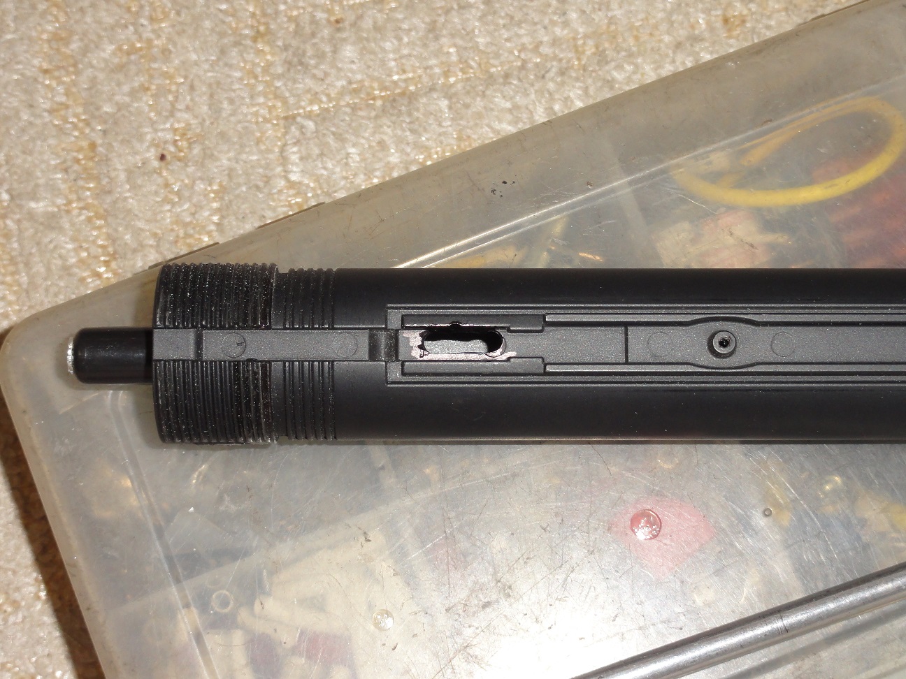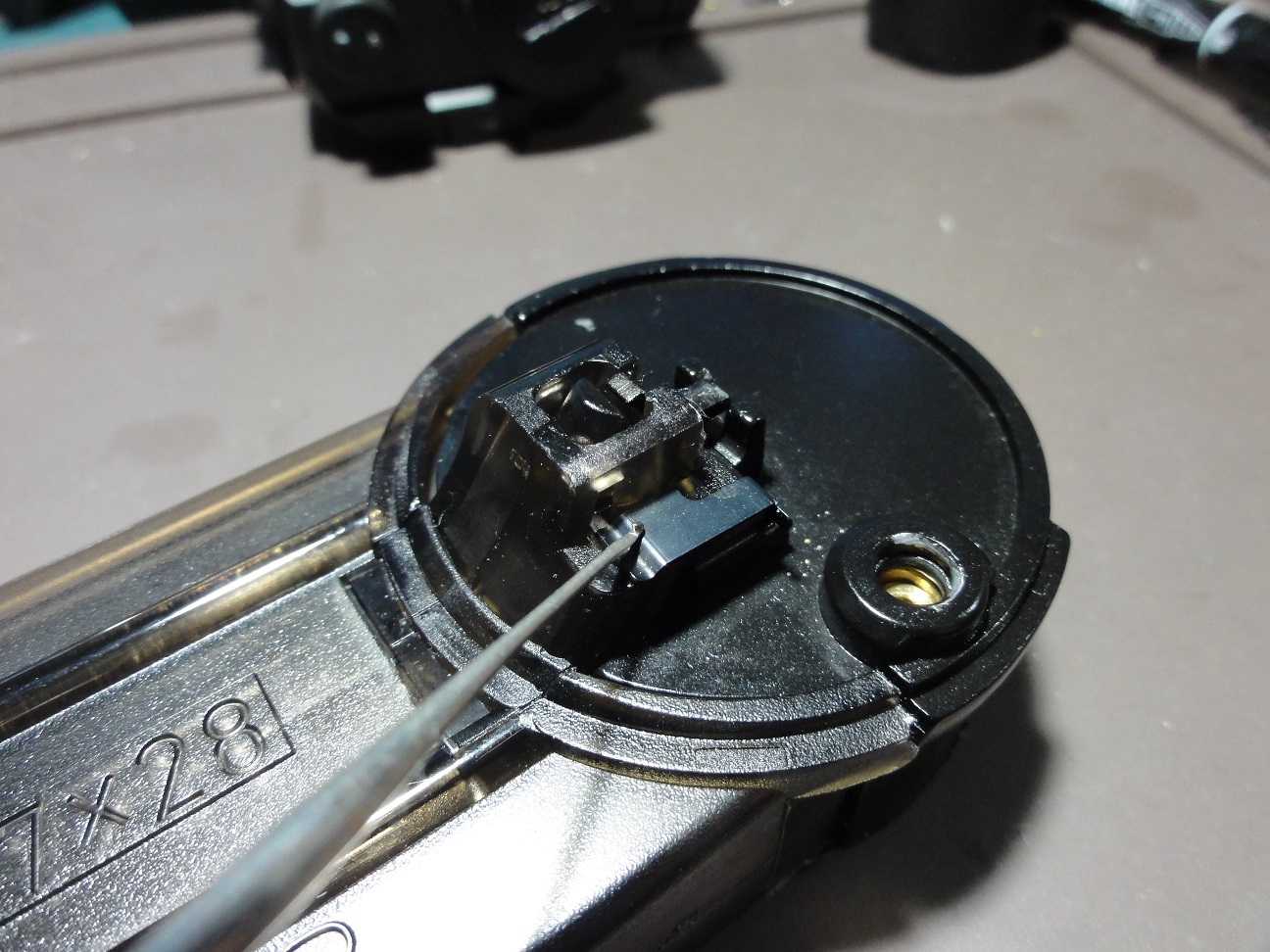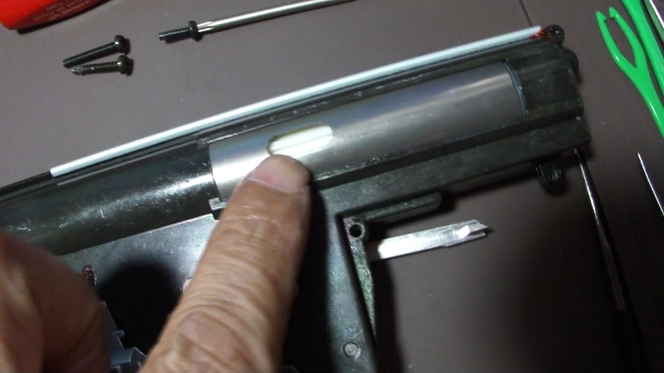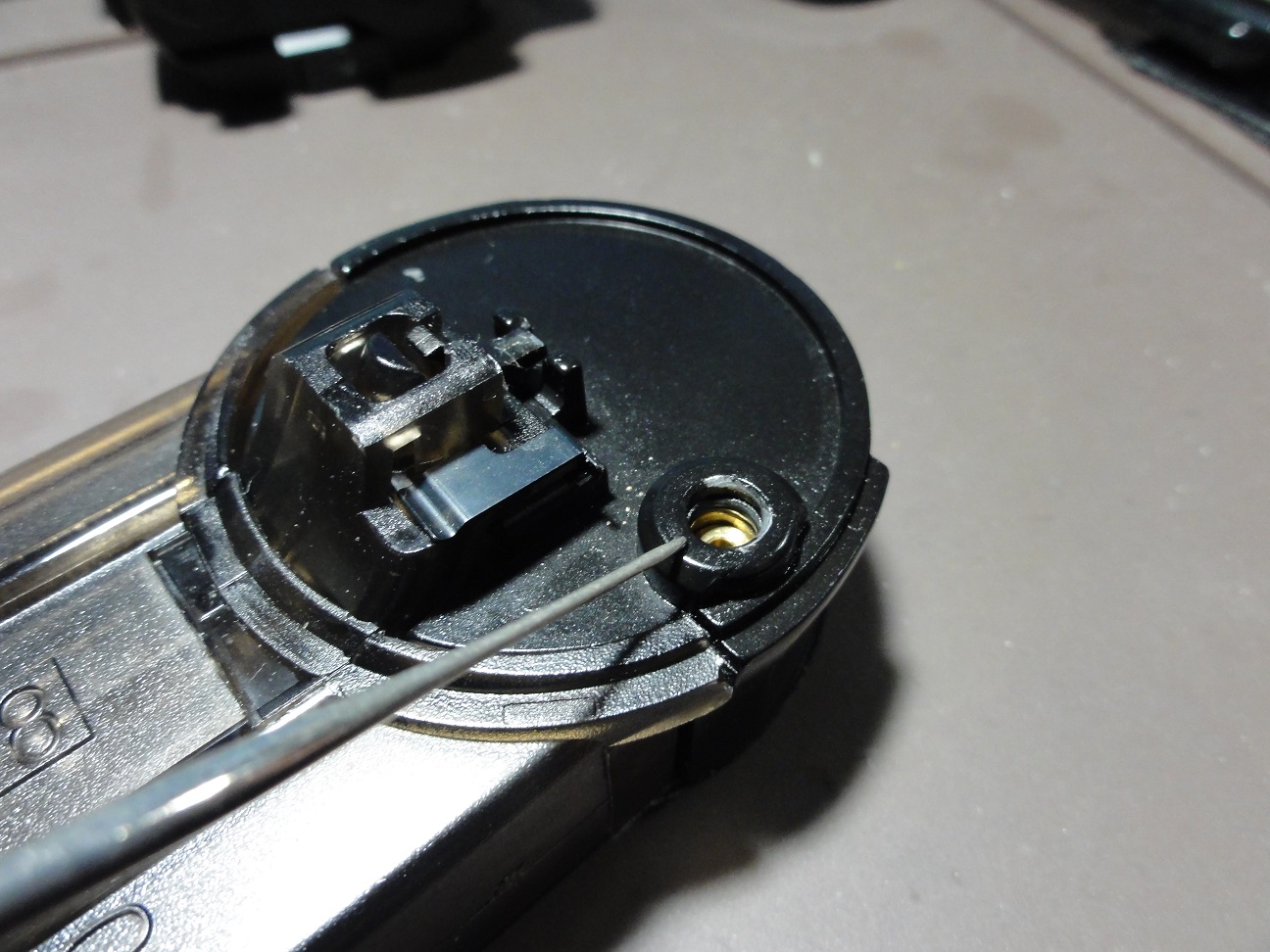 ちょうどBB弾がすっぽり外れ止めはレジンで硬化固定