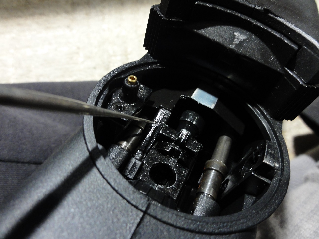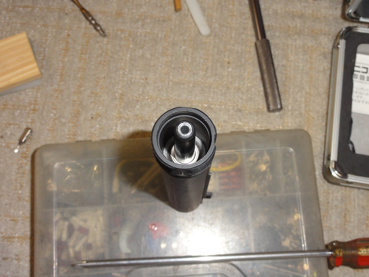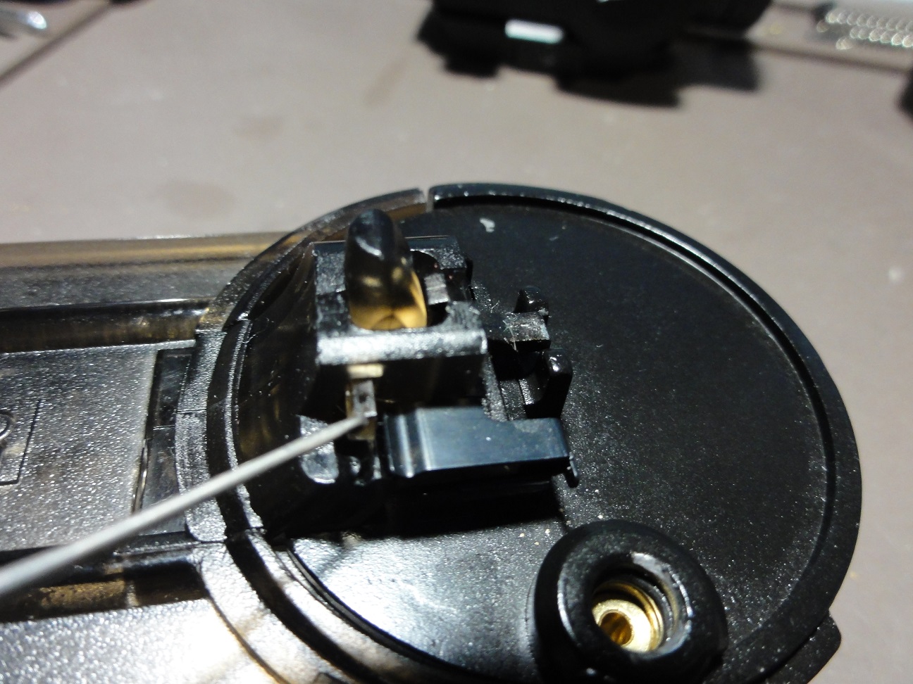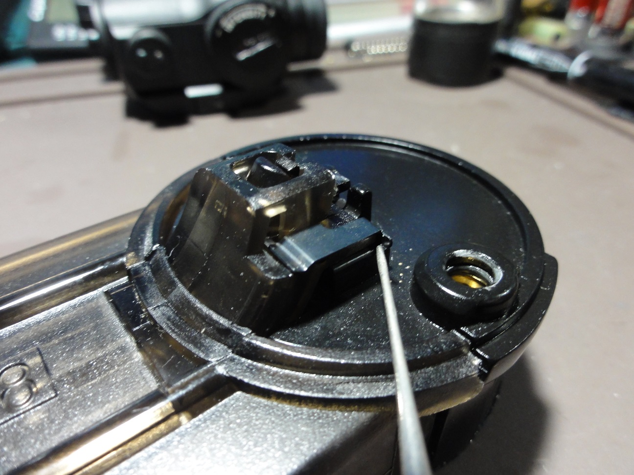 ちょうどBB弾がすっぽり外れ止めはレジンで硬化固定
