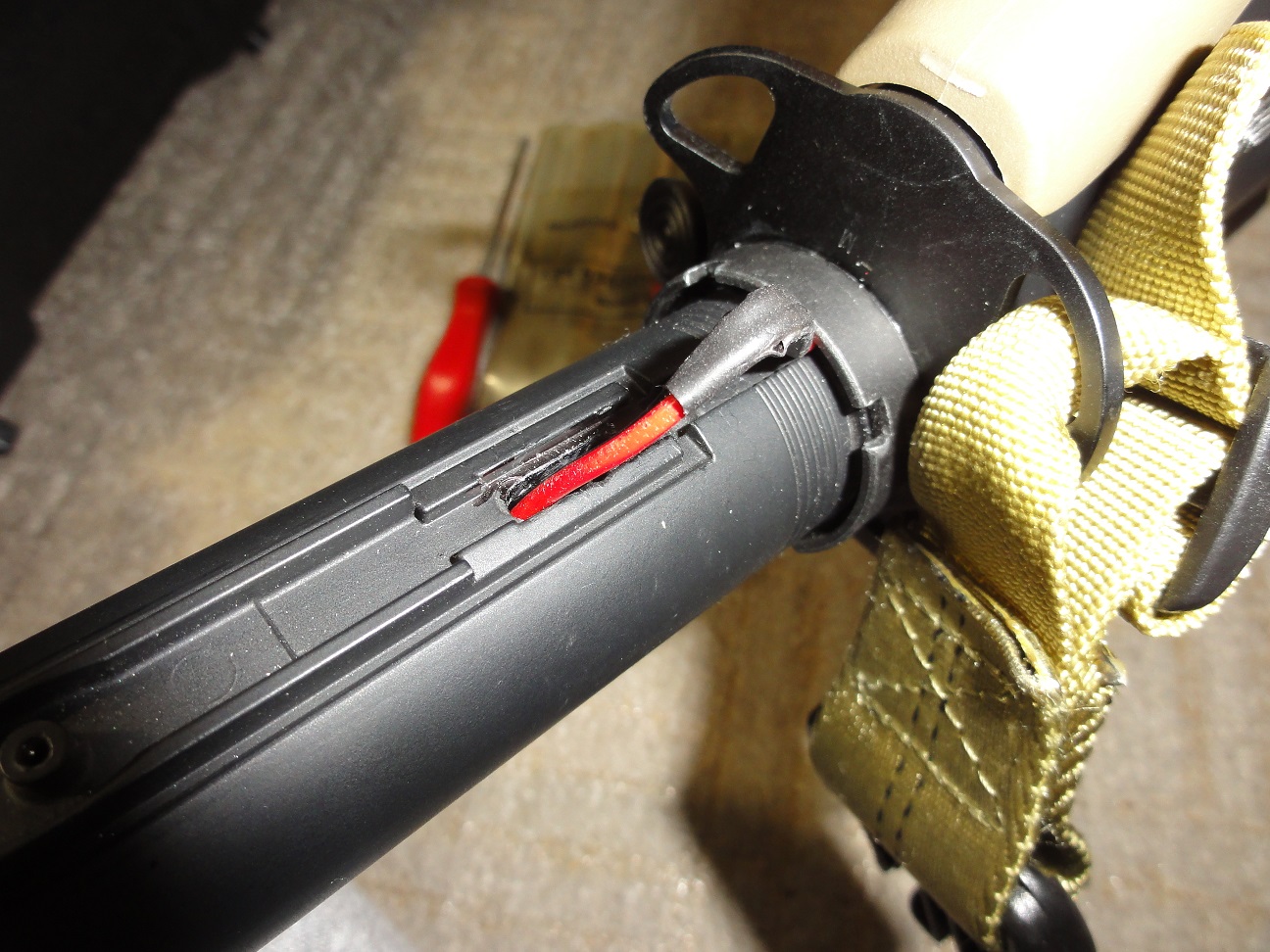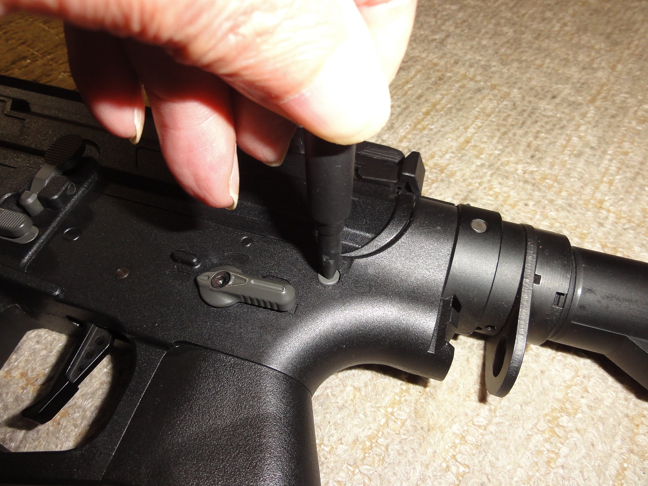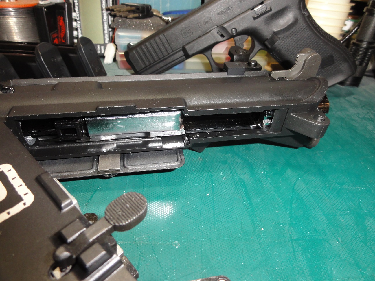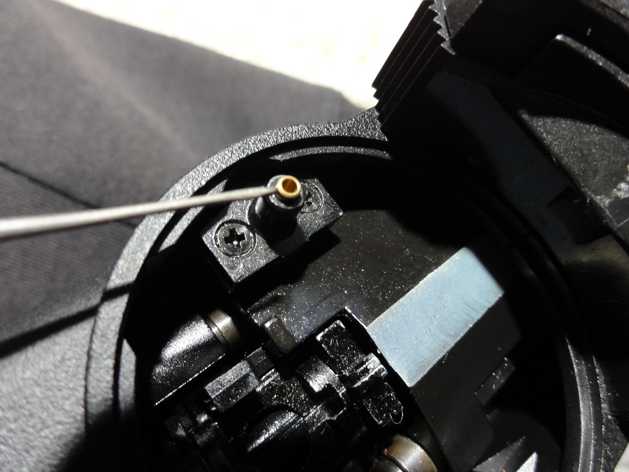 ちょうどBB弾がすっぽり外れ止めはレジンで硬化固定