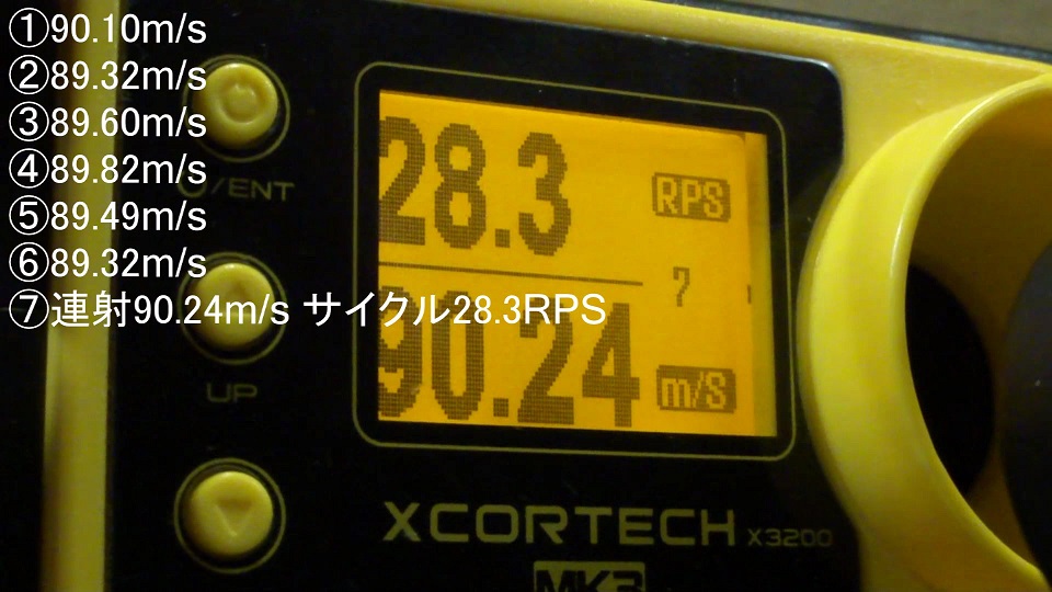 初速は88MPS(±1MPS) フルのサイクルは16RPBにて落ち着いた。