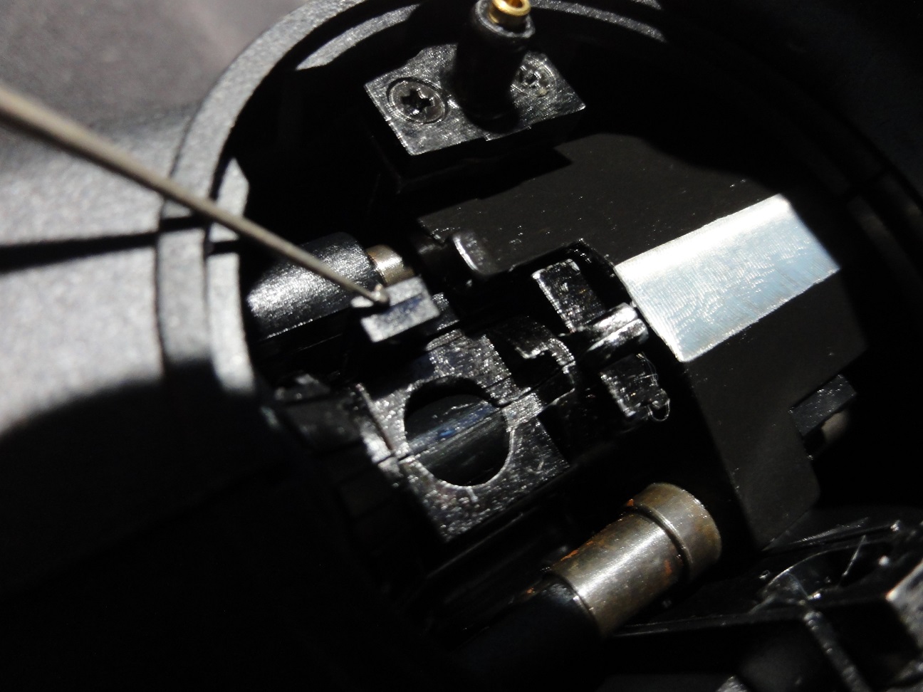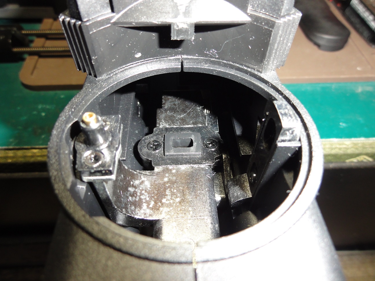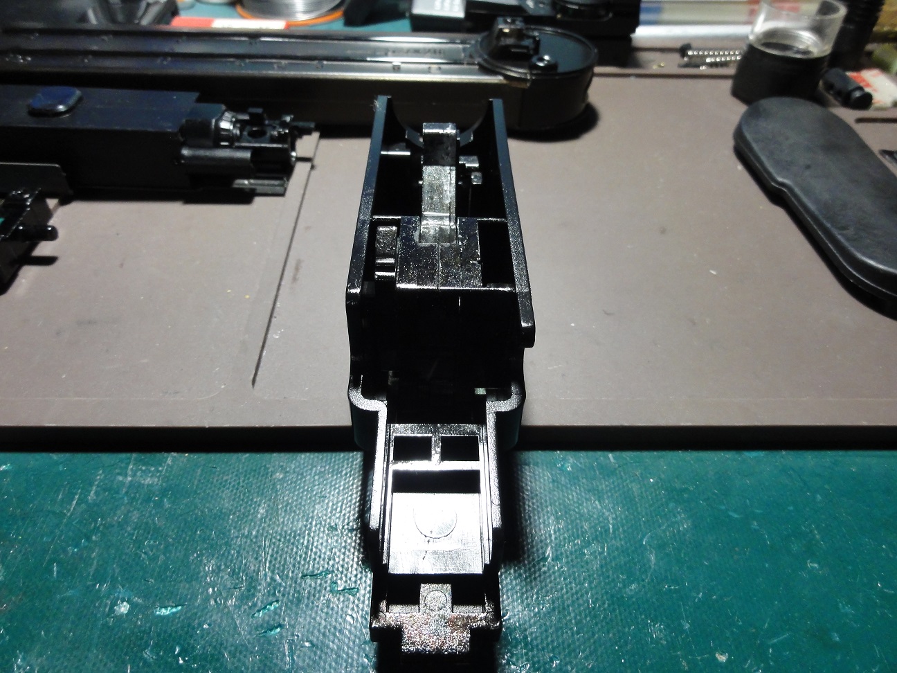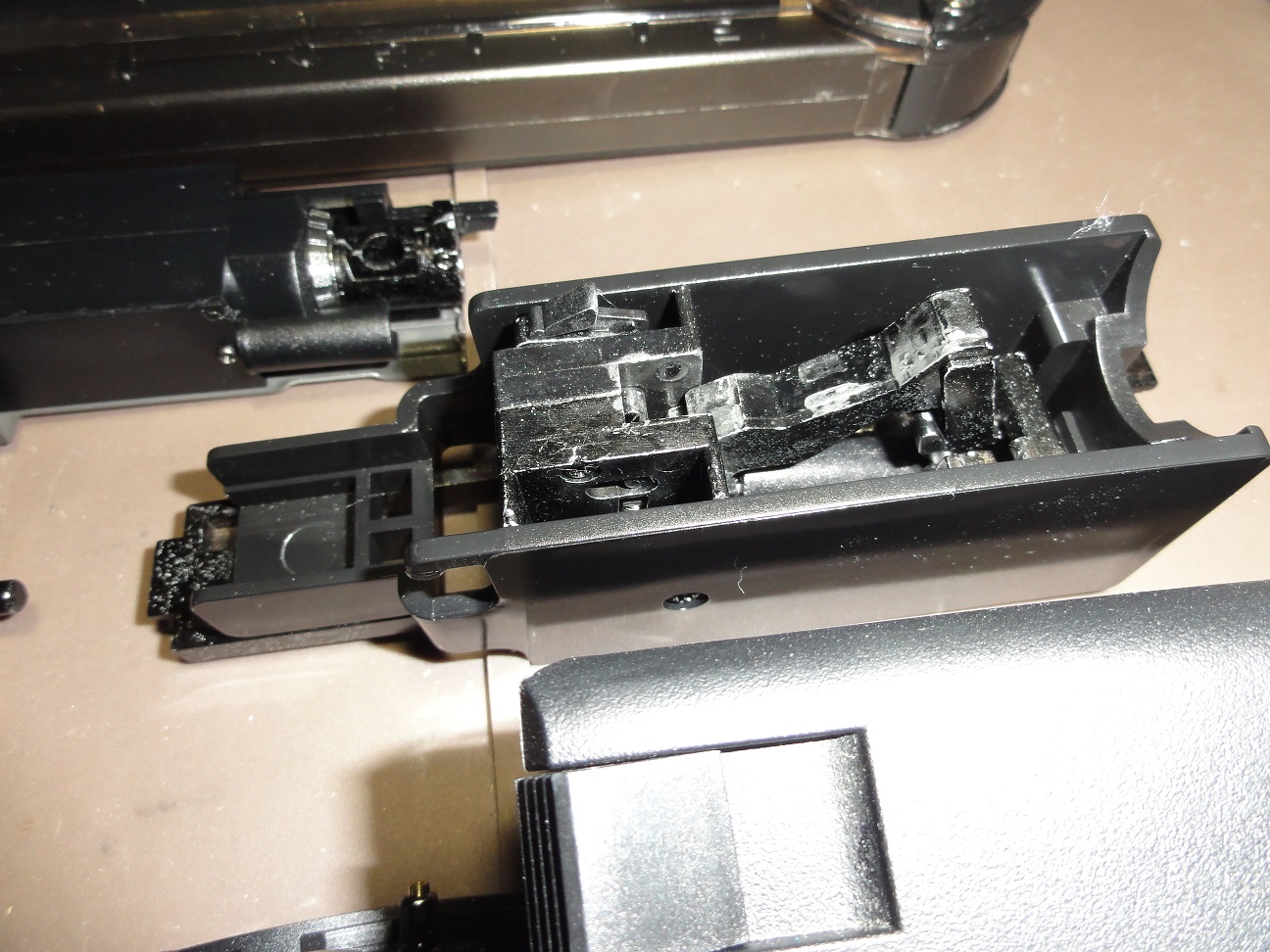 随分考えられて造られている感じ左側の金具はメカボックスの固定用