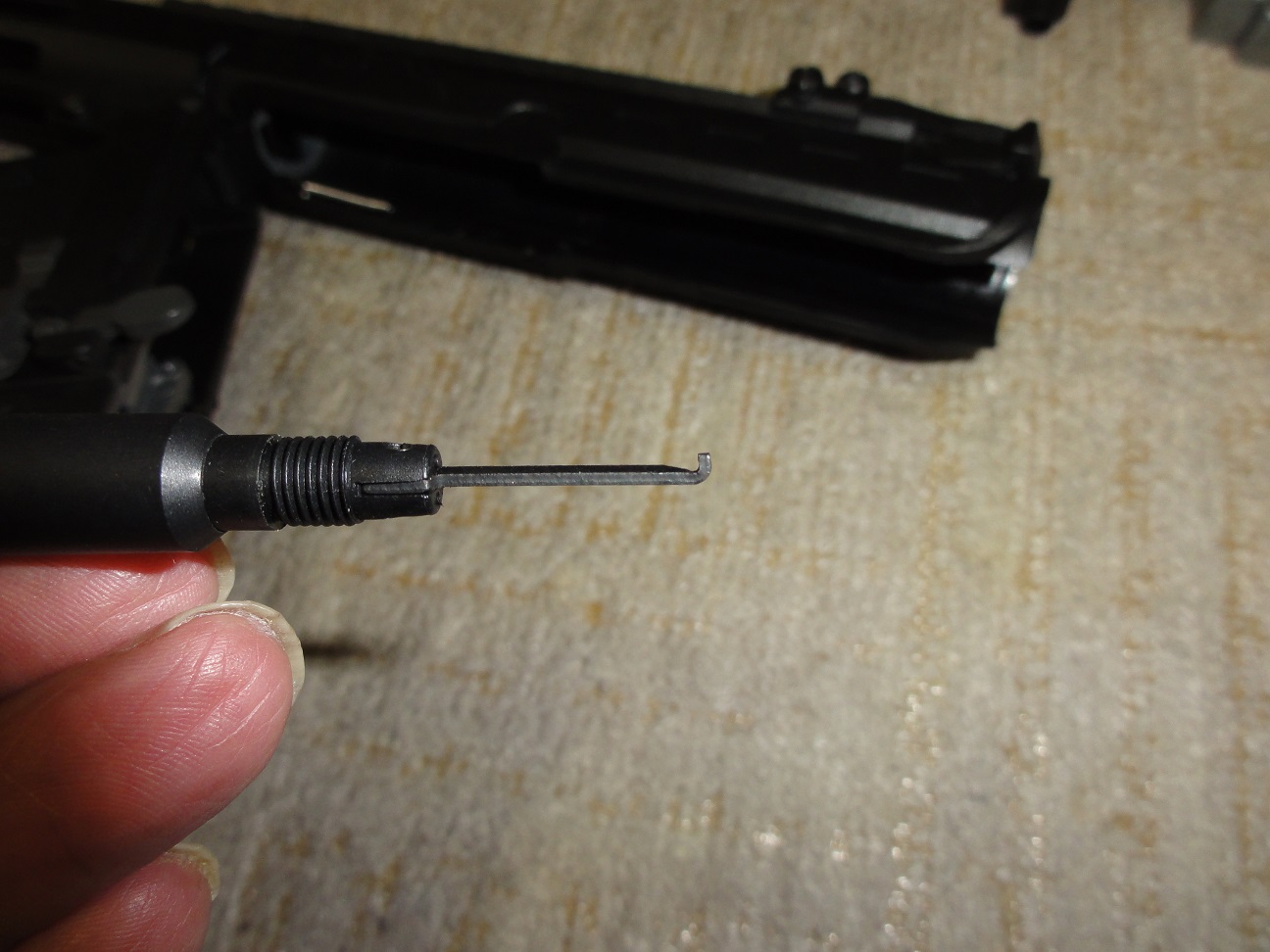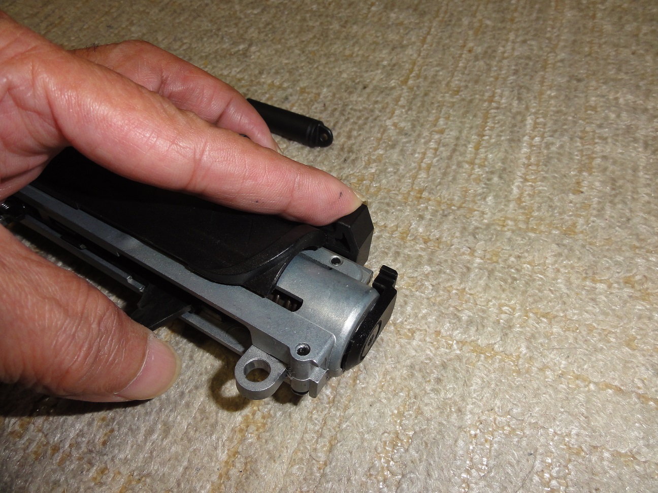 トリガーピンは分解時すでに緩め、抜け止め部のローレット加工が甘い