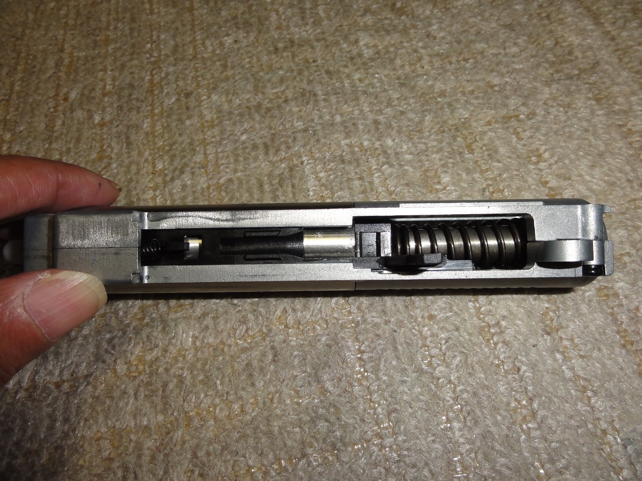 上記写真をよく見るとフレームとトリガーの段付きの部分のズレがわかると思うが