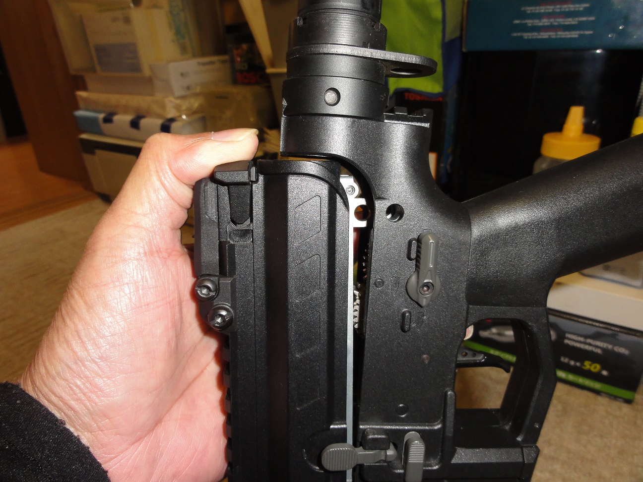 ちょいと重量はありますがCQBで取り回しの良いプルバックライフル完成です。
