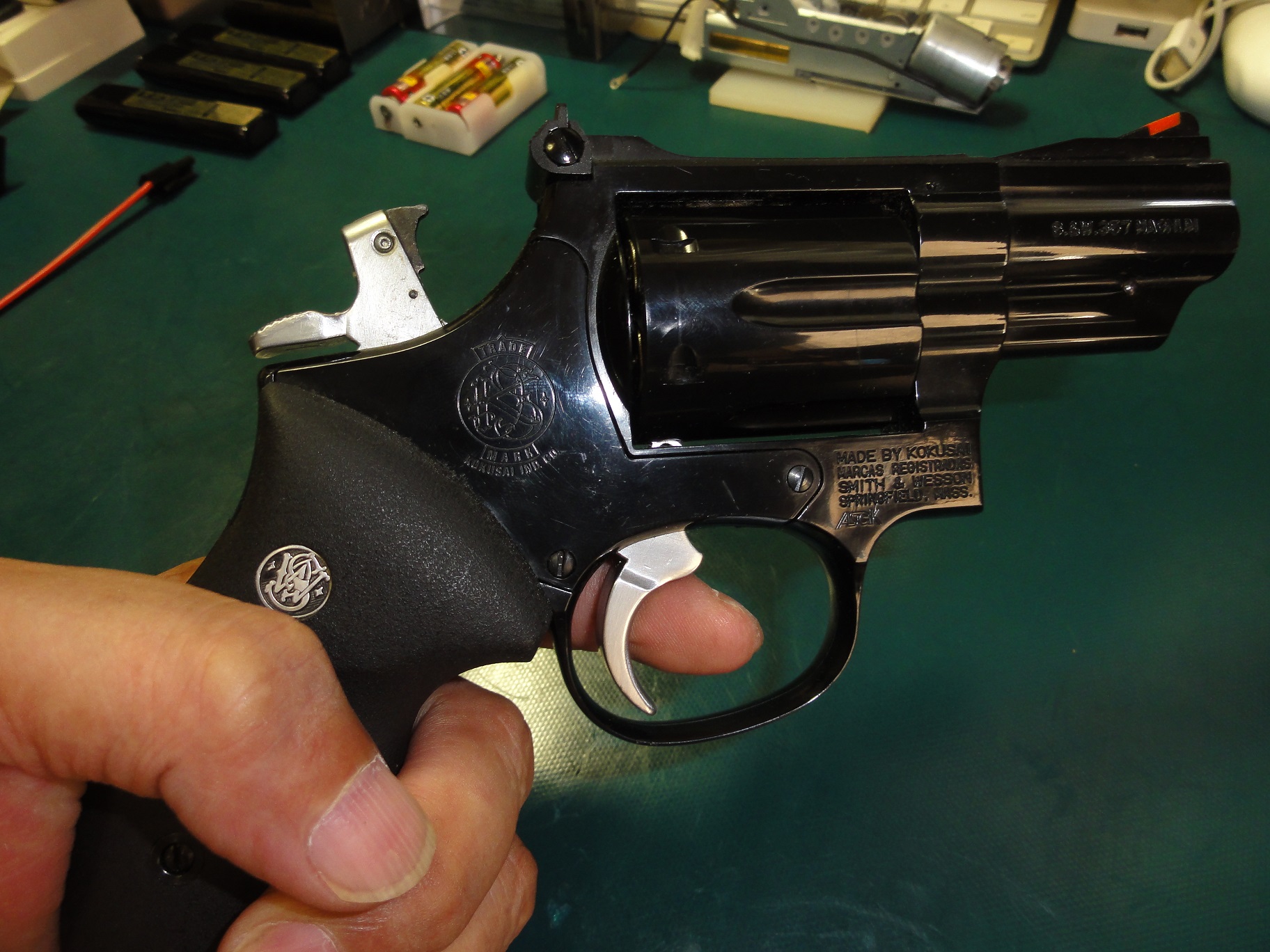ハンマー下のフレームの刻印よーく見るとS&Wでなくコクサイをモチーフしてます。