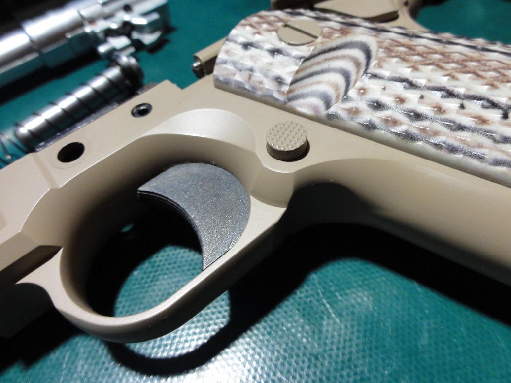 トリガーガード周りも綺麗だ、グリップも特殊プリントでそれなりに再現されている