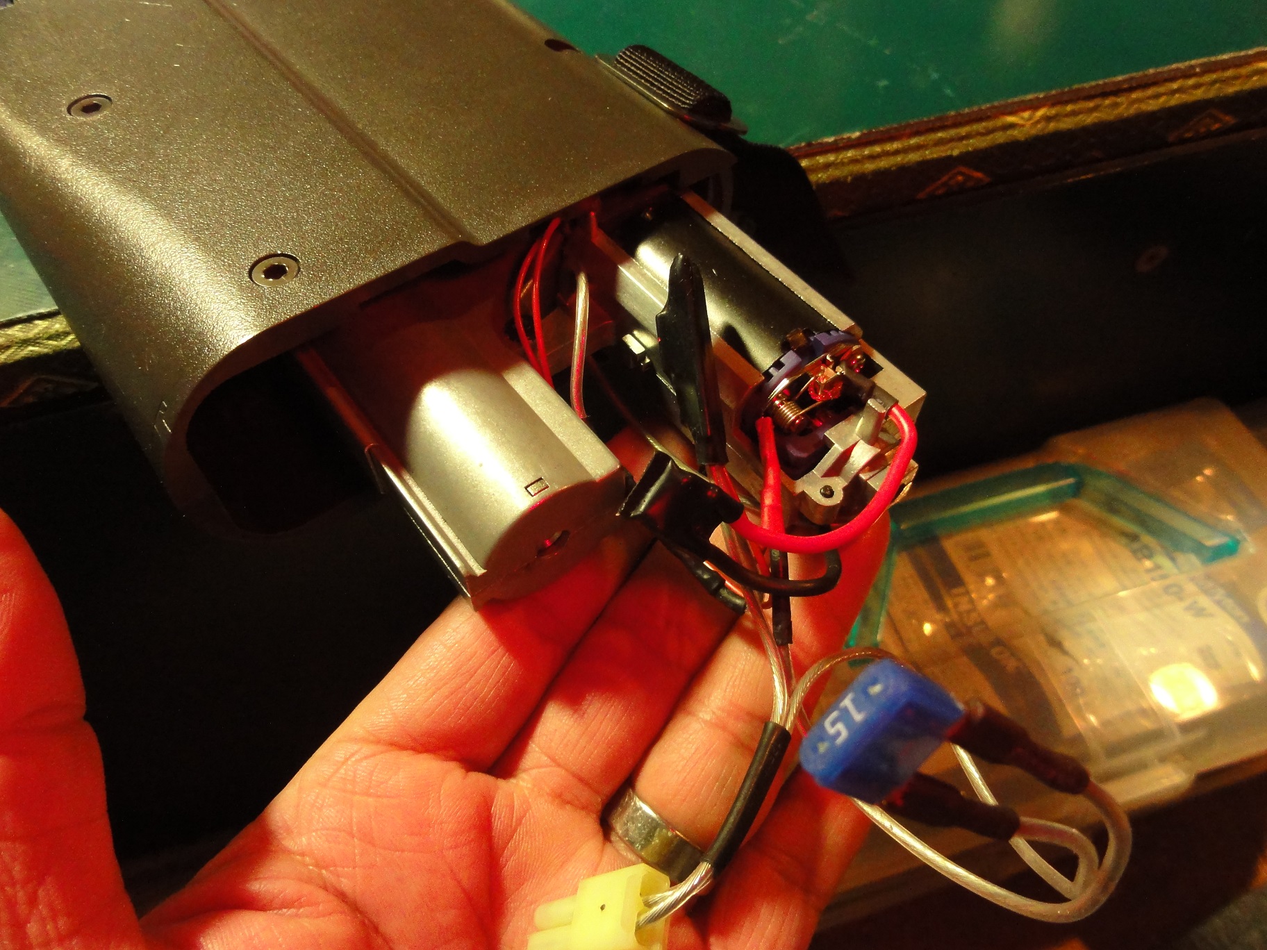 ストック内部はスペースが多いので楽に格納でき配線取り回しも適当に・・・