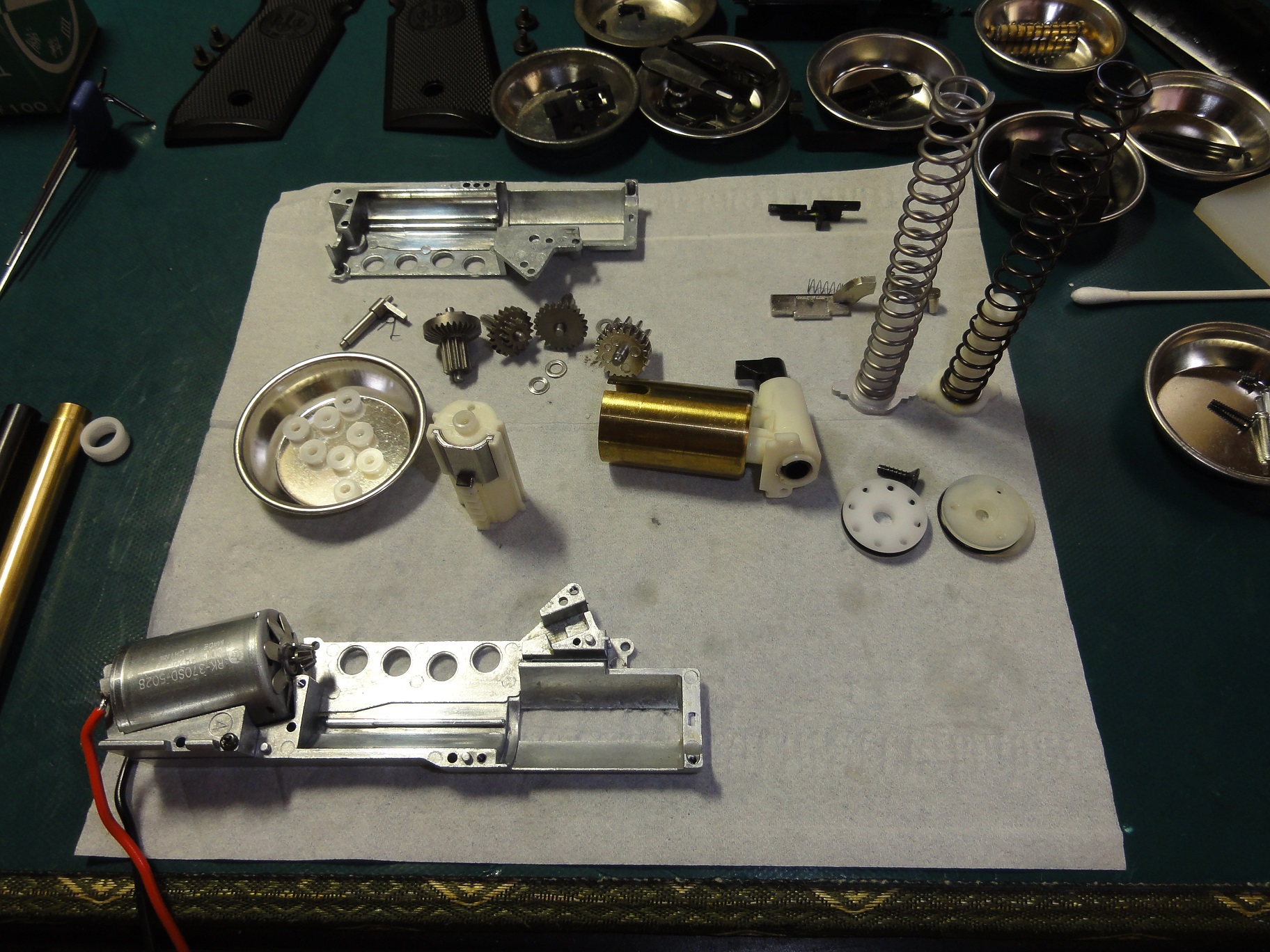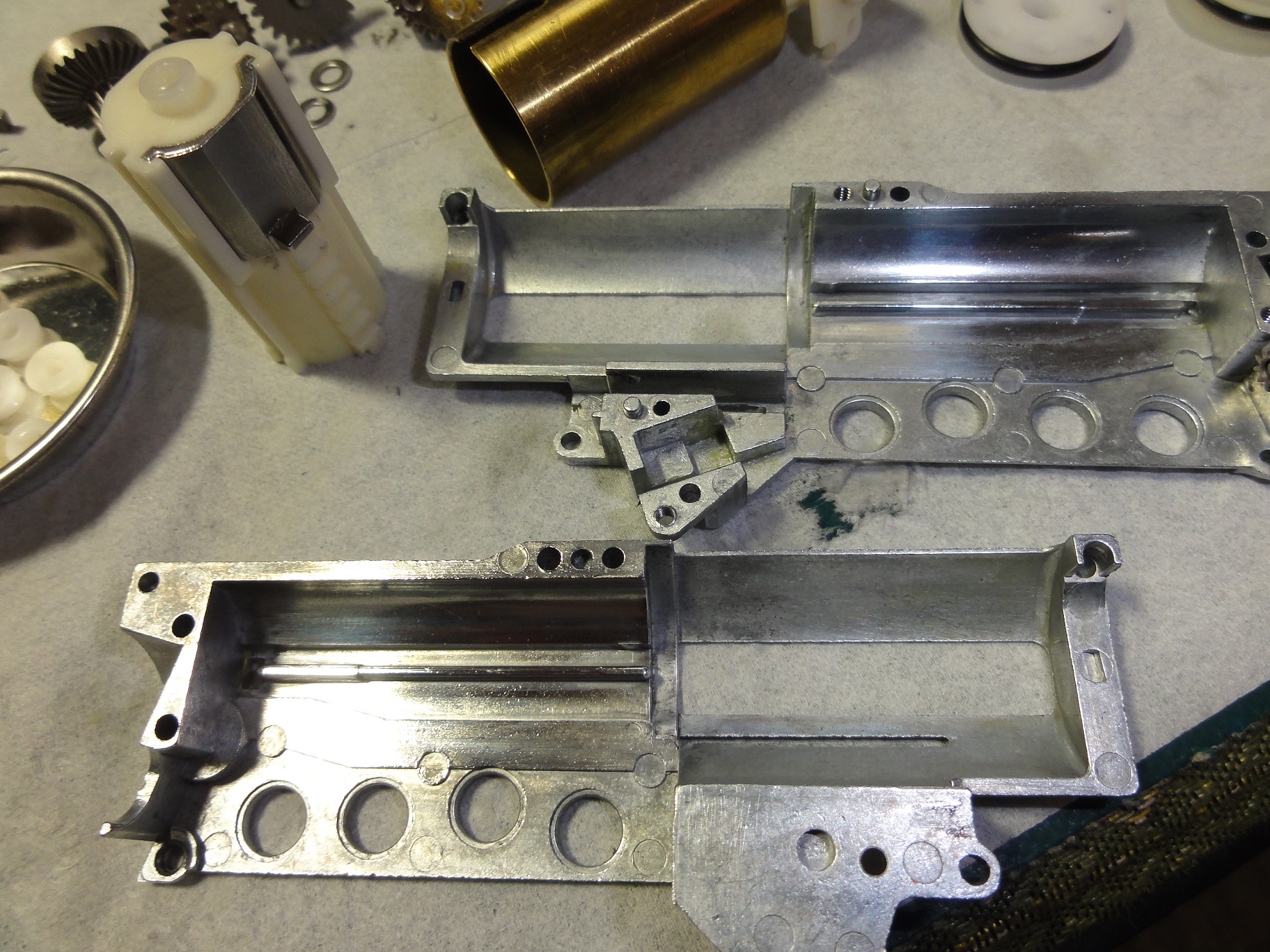 右側はUSPのギヤボックス、ノズルカムの横にセフティレバーがある