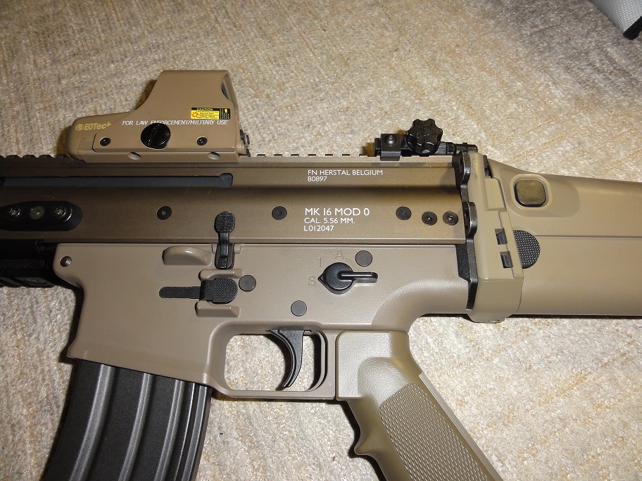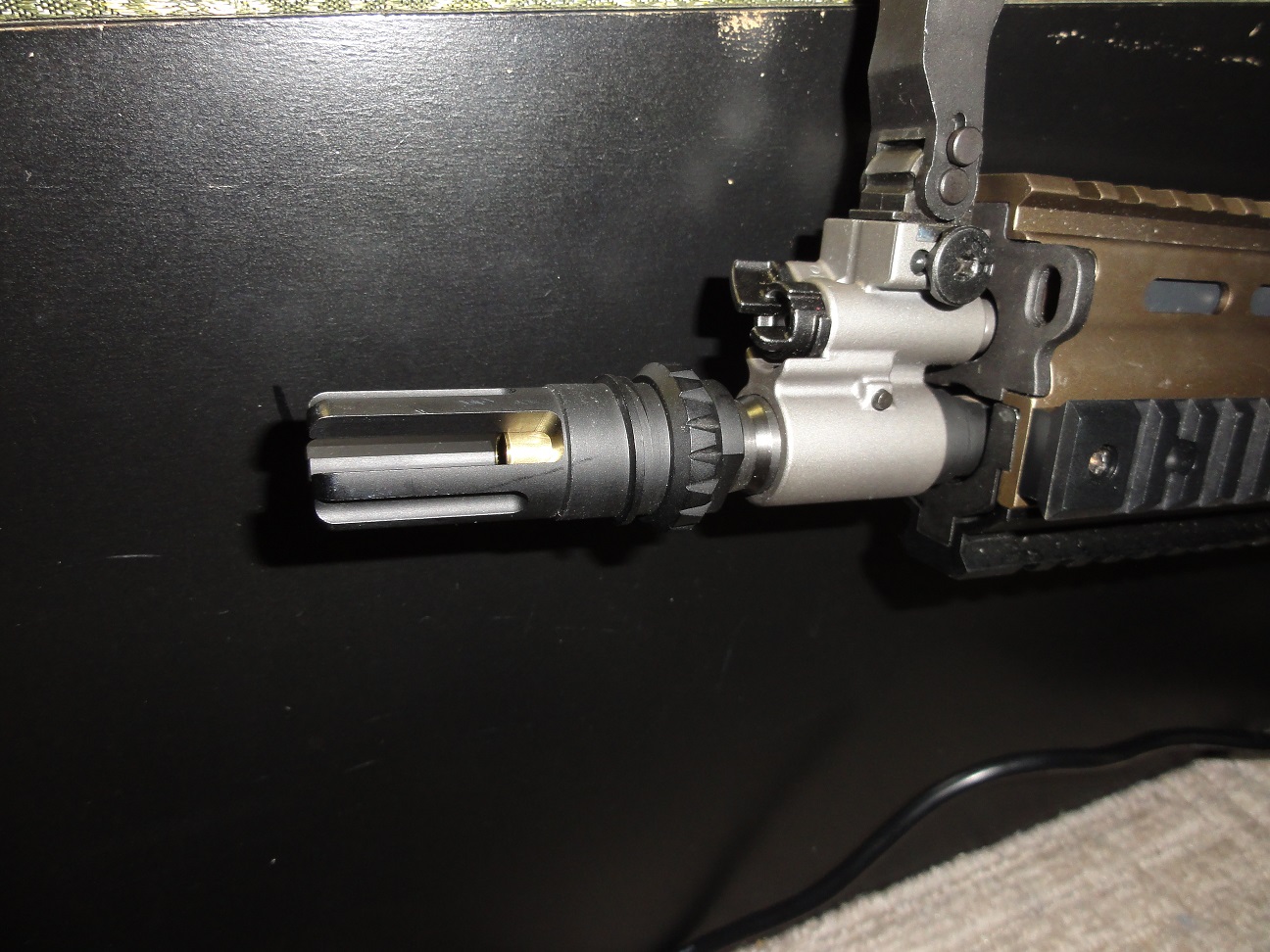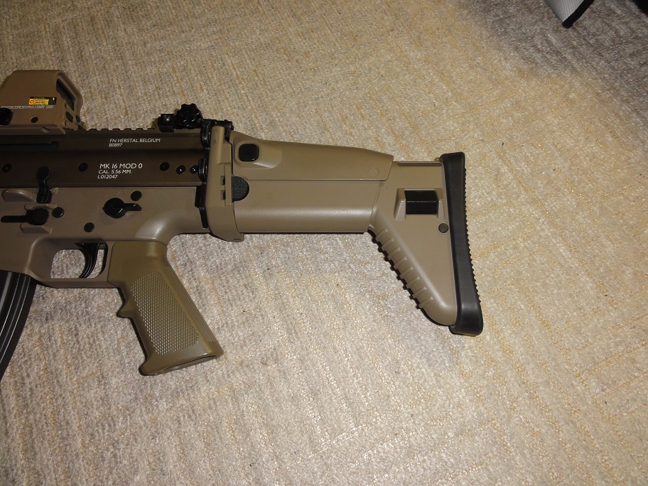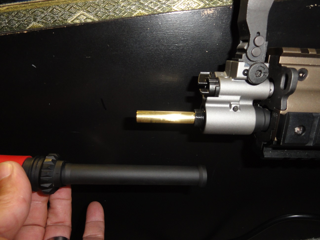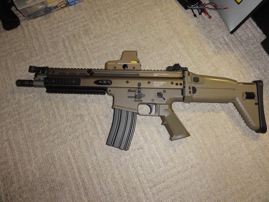 まだあった次世代電動ガンSCAR-L FNエルスタール社の出したSCAR-L フラット・ダークアースカラー どう言うわけかH&KやFNの銃器が多い管理人? 安く購入できたのはいいけど結局ライラクスの2ウェイバレルを組むのか まずは箱だし性能を・・・ まあ、こんなもんか次世代なら アウターバレルを組み終わりチェンジしてみた絵 これだったらCQCシリーズを買えよと言う話・・そこは大人の事情で タクティカルサイレンサーを装備して楽しみました ハイダーはM16用にしてコンパクトに、刻印もきれいです ストックは折りたたみ式、6段に伸縮、チークバッドも2段変更可 インナーバレルは300mmSCAR-L用のためハイダーの中まできています ここで再度計測です 弾はマルイバイオ弾0.2gですモーターはEG1000+リポ7.4v2200mAhで運用 満足いく性能になりました。 [0回] コメント コメントを書く コメントを書く コメント送信