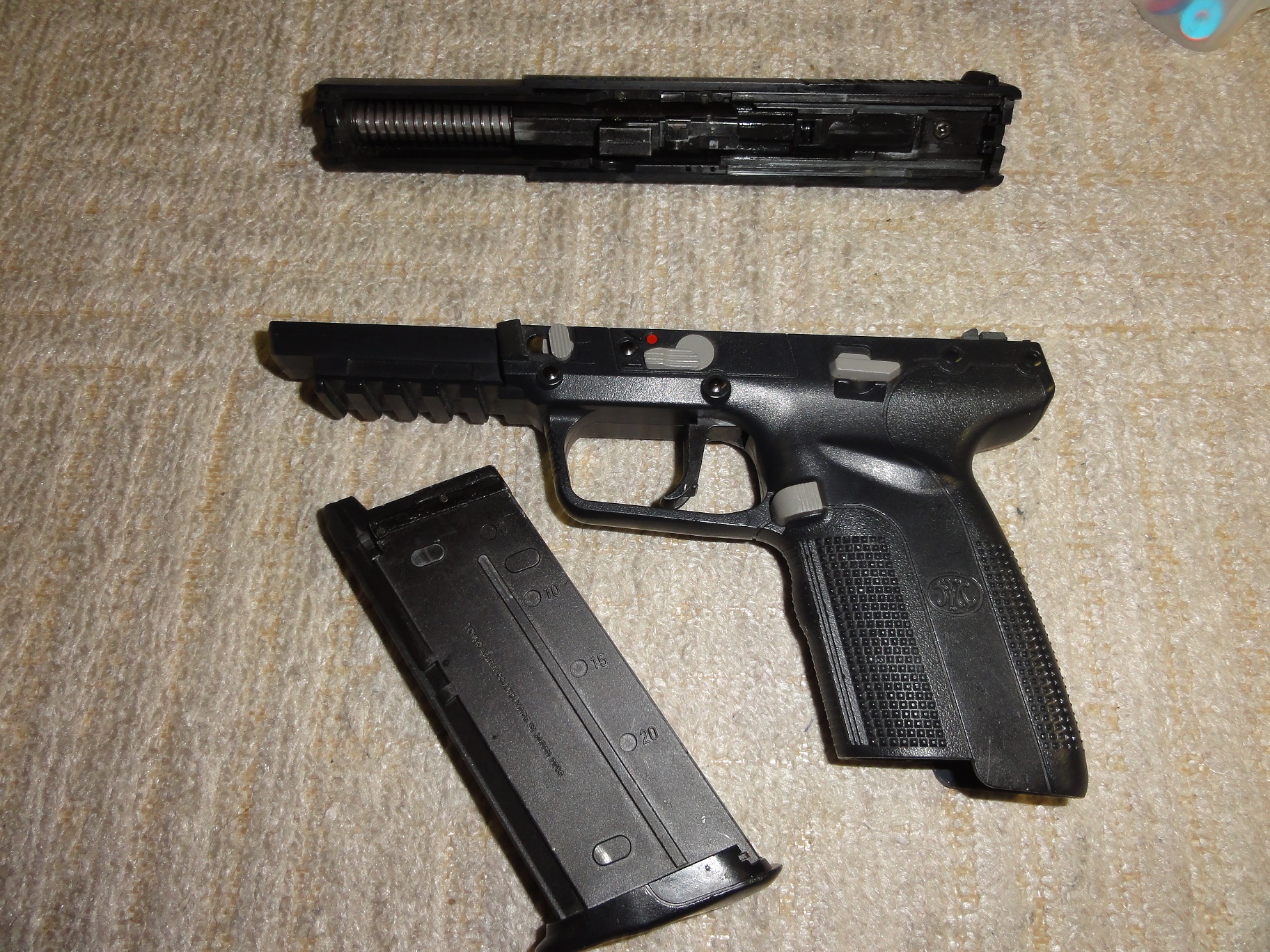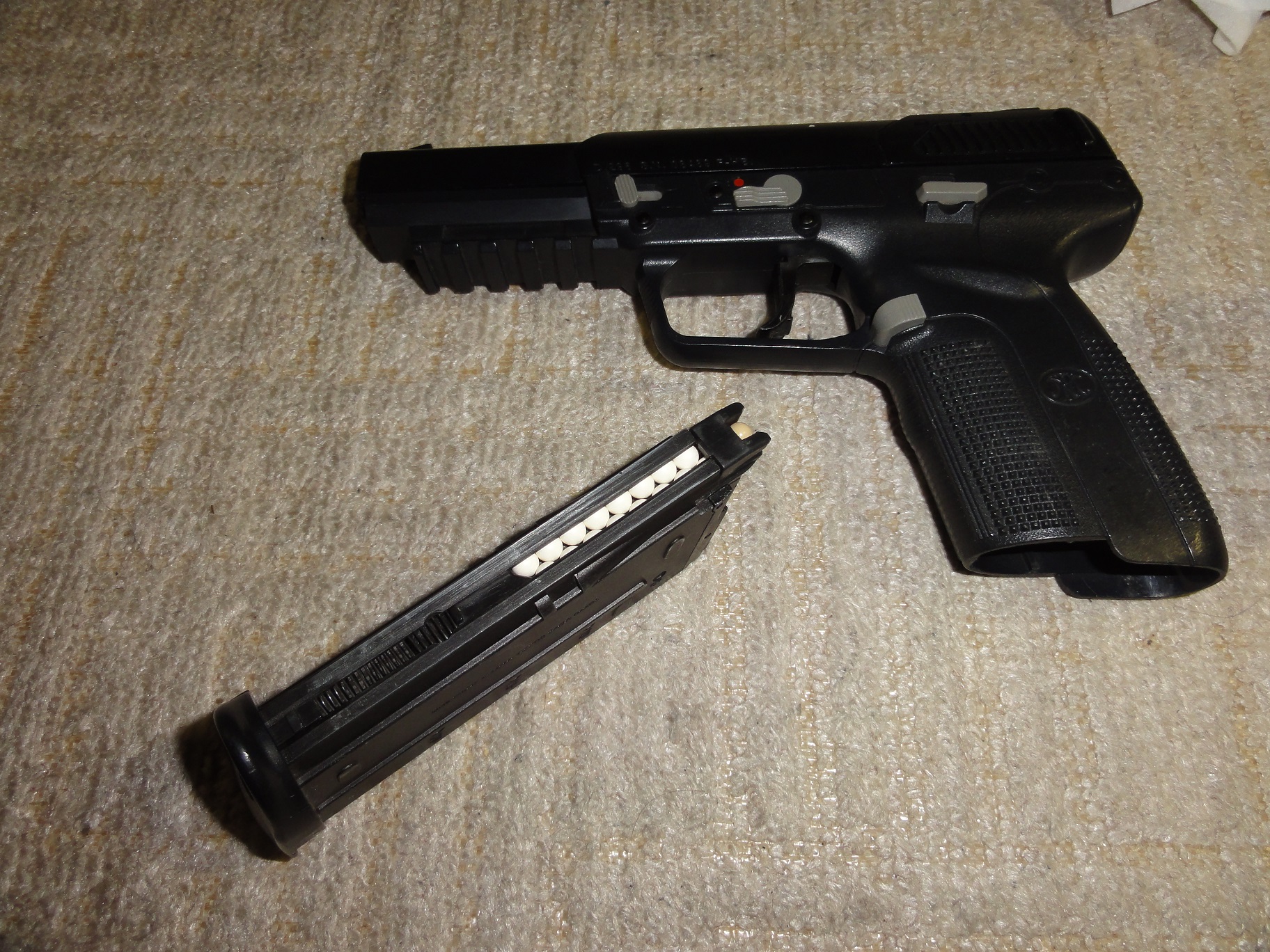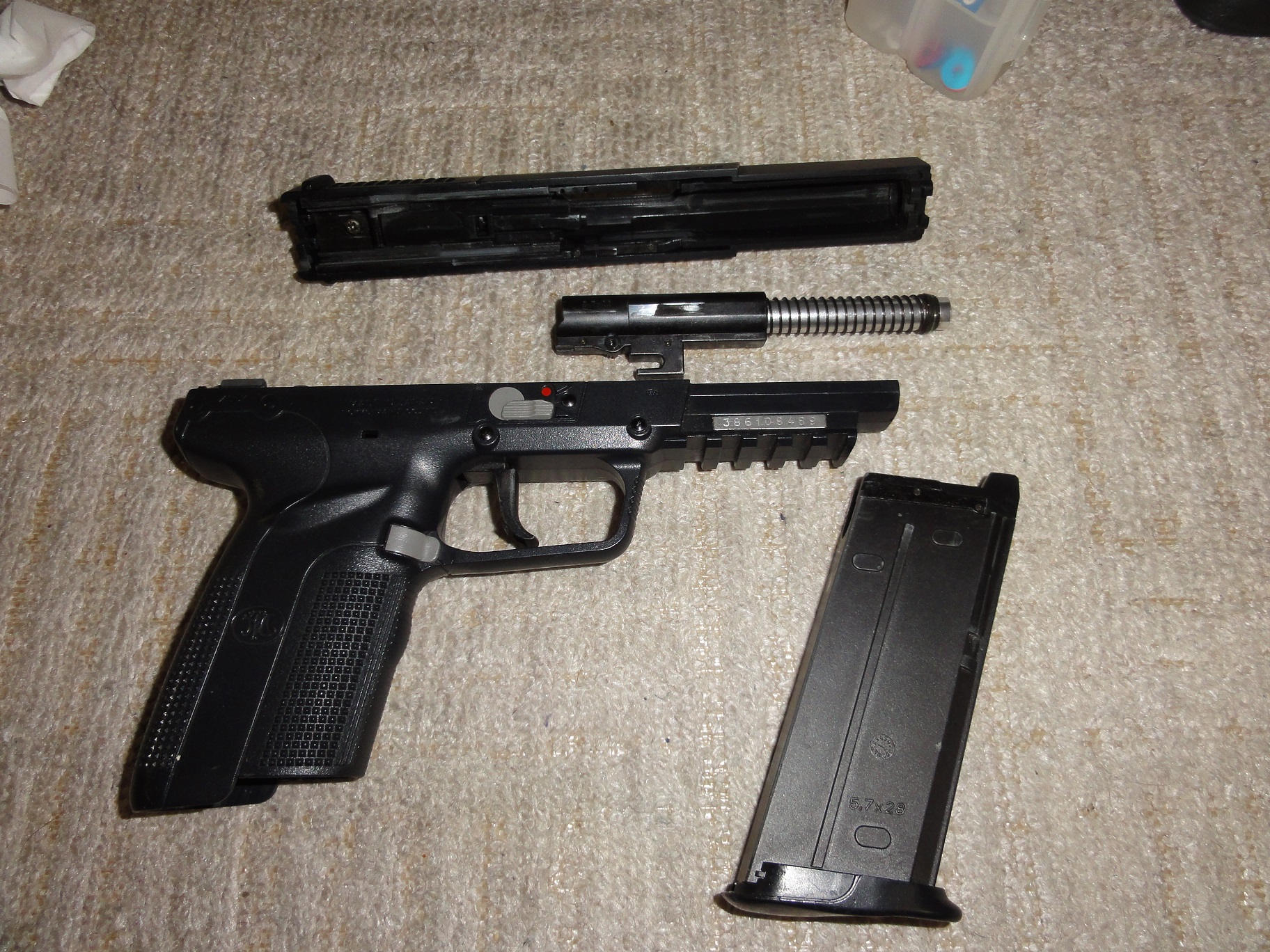 東京マルイGBB FNファイブセブン 手持ちのガスブローバックの紹介記事 ちょっと前の懐かしいモデルです P90を装備する時には唯一無二の相棒ですね FN5.7これは装弾する弾がP90と同じサイズ携行装備を少なくする目的で開発 スライドを引けば大きく開くエジェクションポート スライド量も多い感じでよいです 左のたて向きのレバーをスライドを少し引いて引くと スライドが持ち上げるように外すことが出来ます バレルを抜いて拭き掃除、シリコンスプレーを滑動部の塗り組みなおし マガジンにはBB弾は26発入れれます ノーマルですので初速はこんなもんかか、でも素直な弾道なので良しです。 バレルを入れ替えればもう少し上がるかな [0回] コメント コメントを書く コメントを書く コメント送信