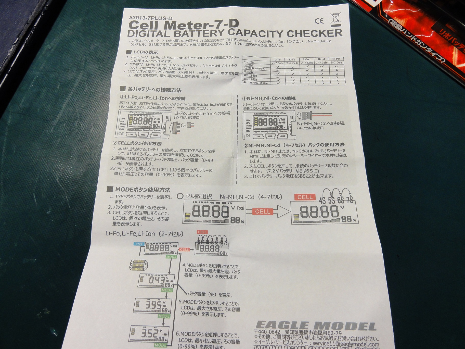 イーグル模型のリポバッテリーのコンデションを見るチェッカー