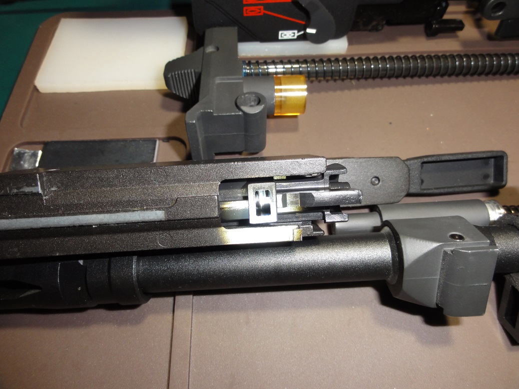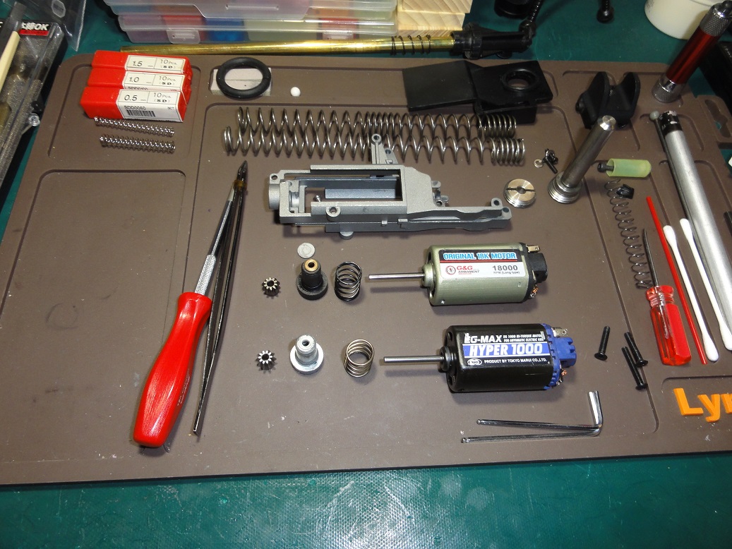 もう一つ上のメインスプリングにしてなおかつ調整式のガイドで初速を調整しようかな