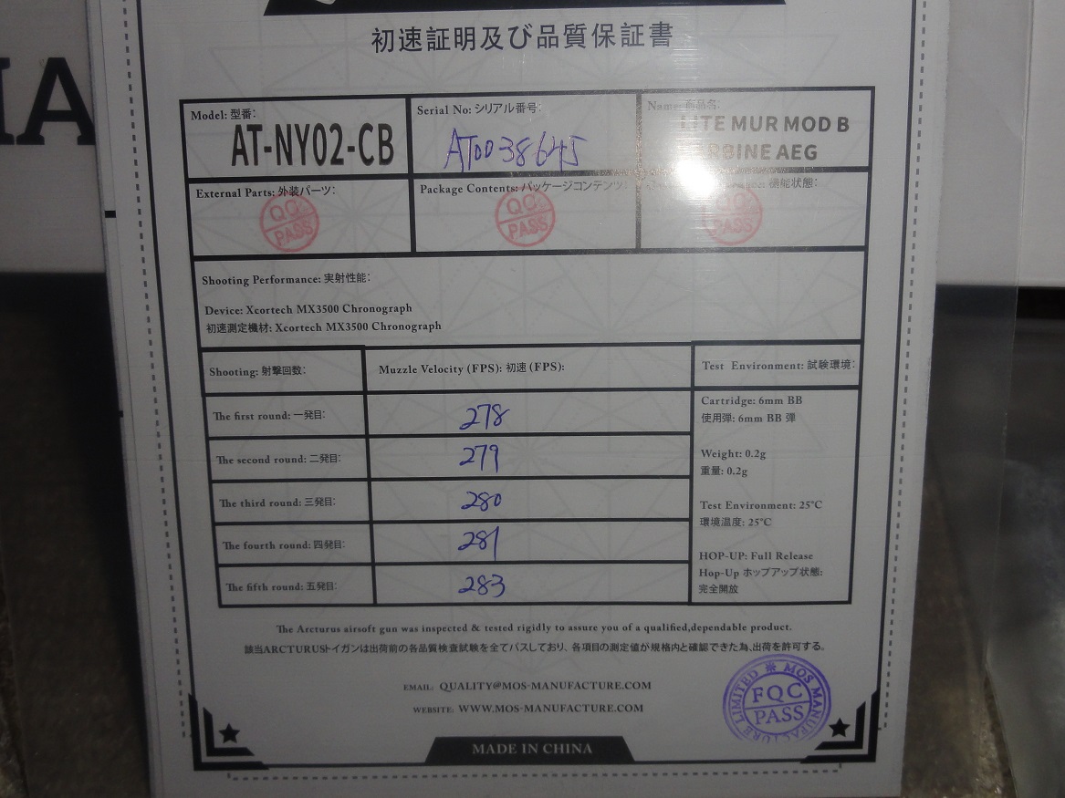 設定初速85m/s以下:フルオートサイクル10rps(600rpm)程度のセティングを目指します