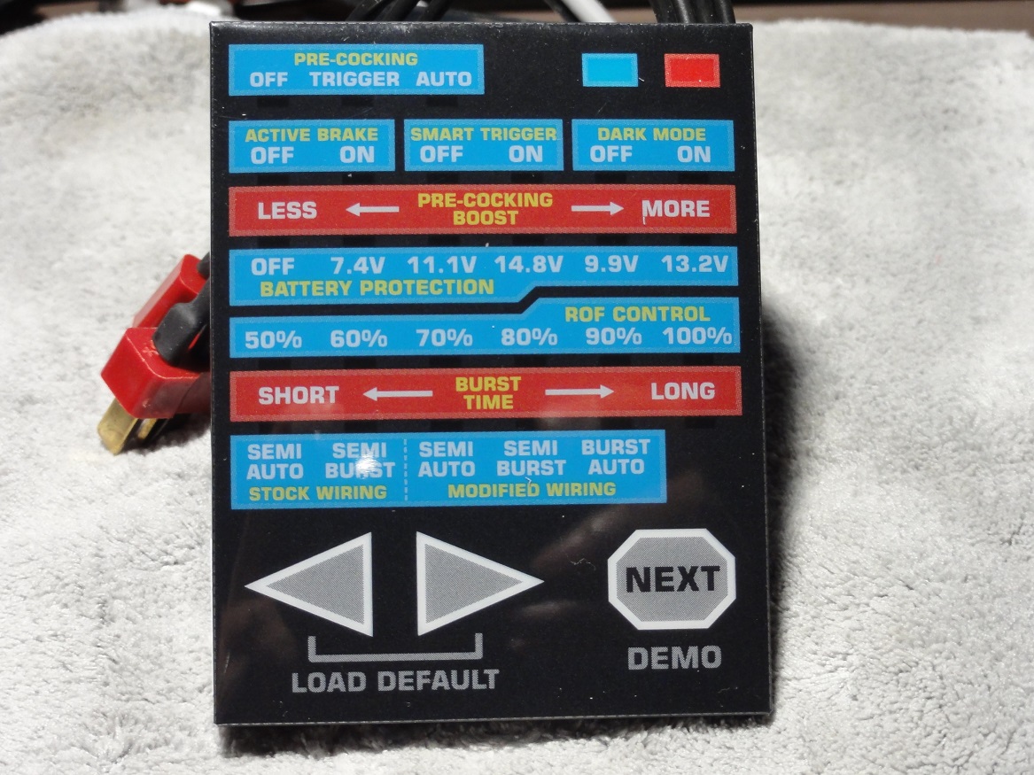 6:RDF CONTROL 50%~100%この機能はセミの切れなどの都合で高速型のモーター搭載などでフルオート時発射サイクルが高く弾数が多いと感じた時必要に応じて下げる機能、これで回転数をセーブした時3項目めの機能が生きる、初弾の発射の切れも悪くなるのを防止