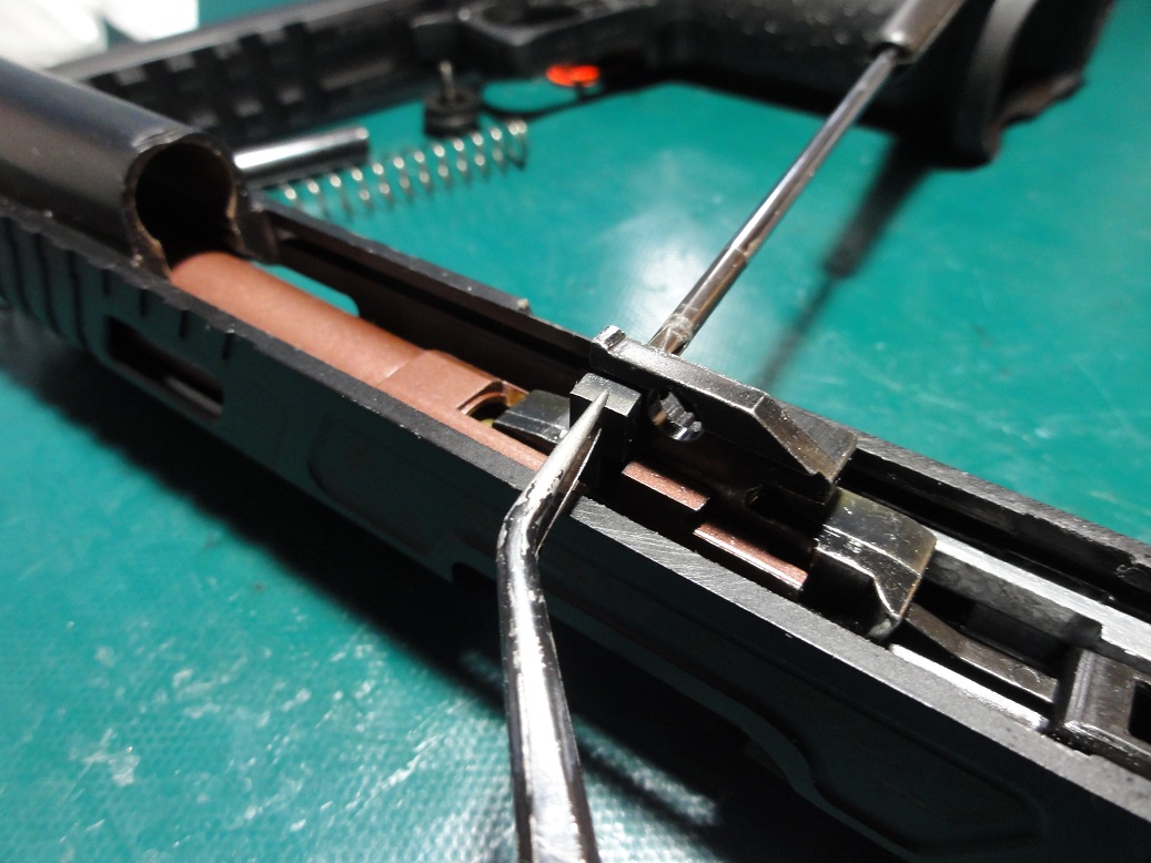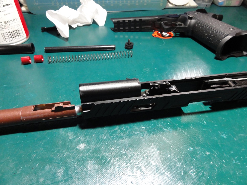 やはり、スライドスプリングはガイドロッドとスプリングシートがネジ式でした。