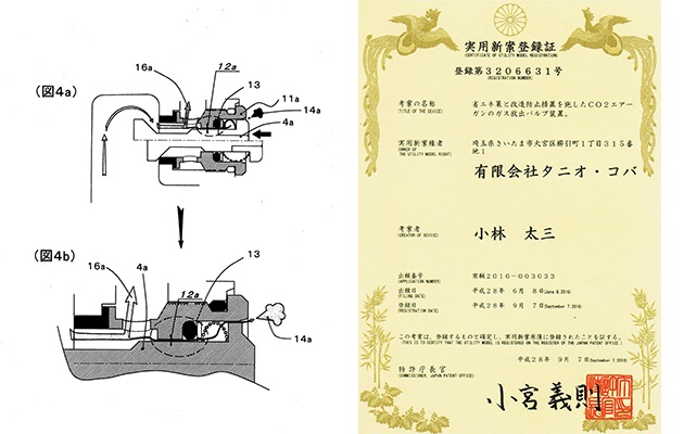 参考のため、下記にタニオコバの特許申請済みのCO2バルプの構造を調べた