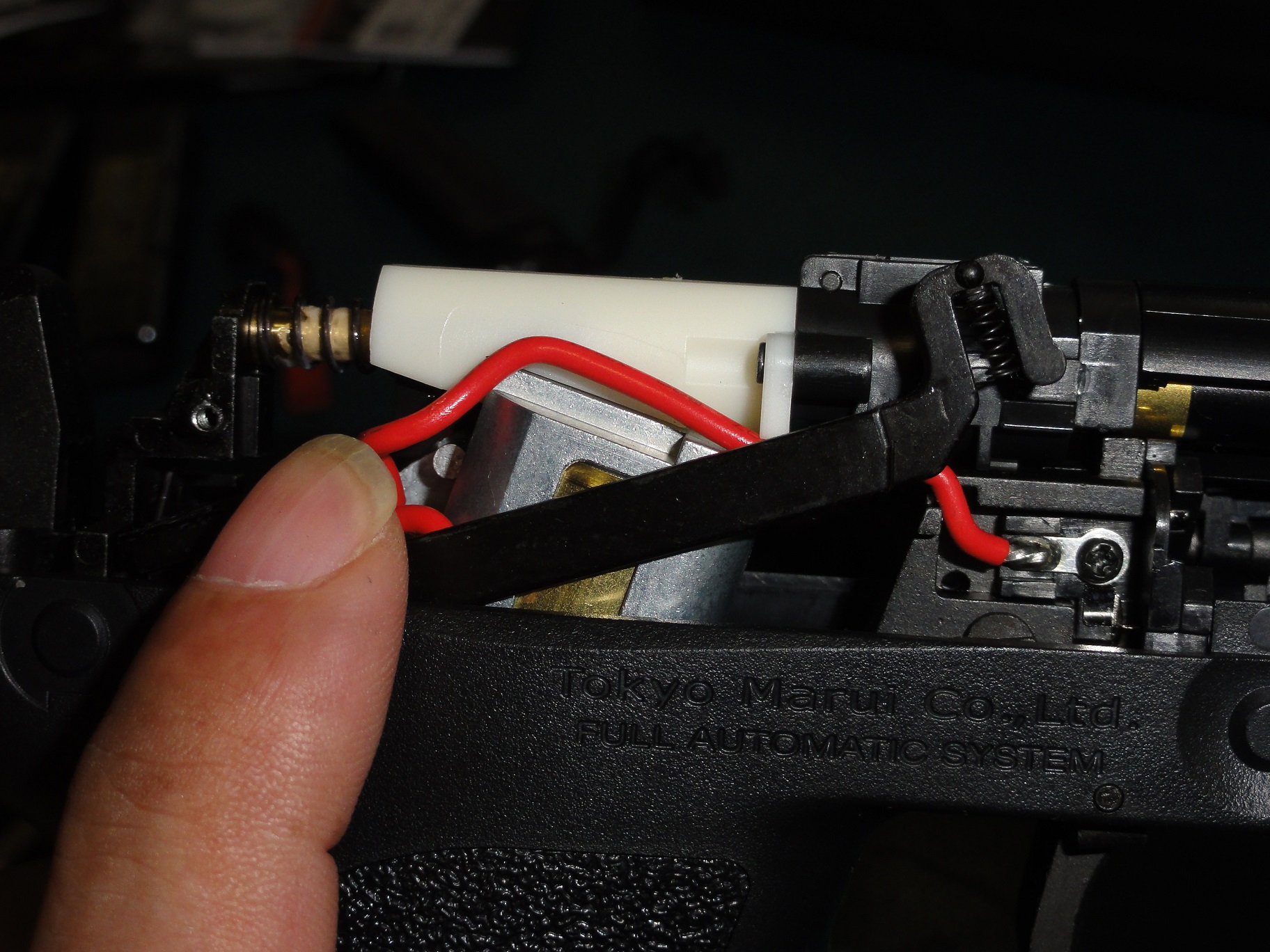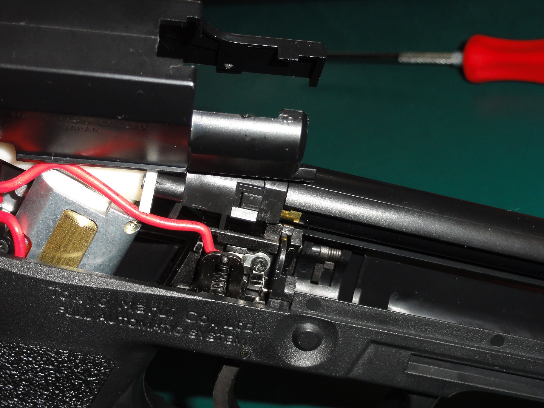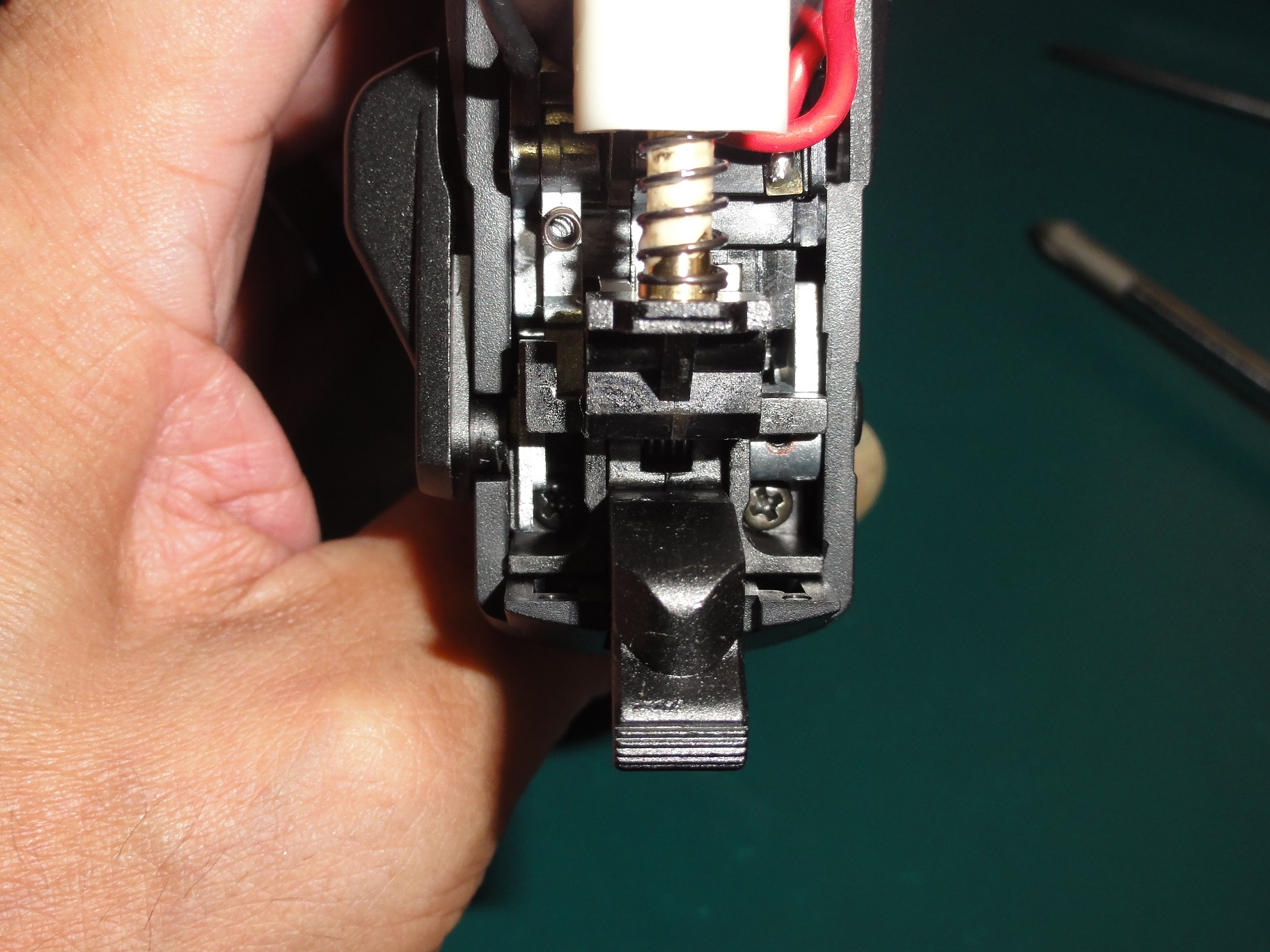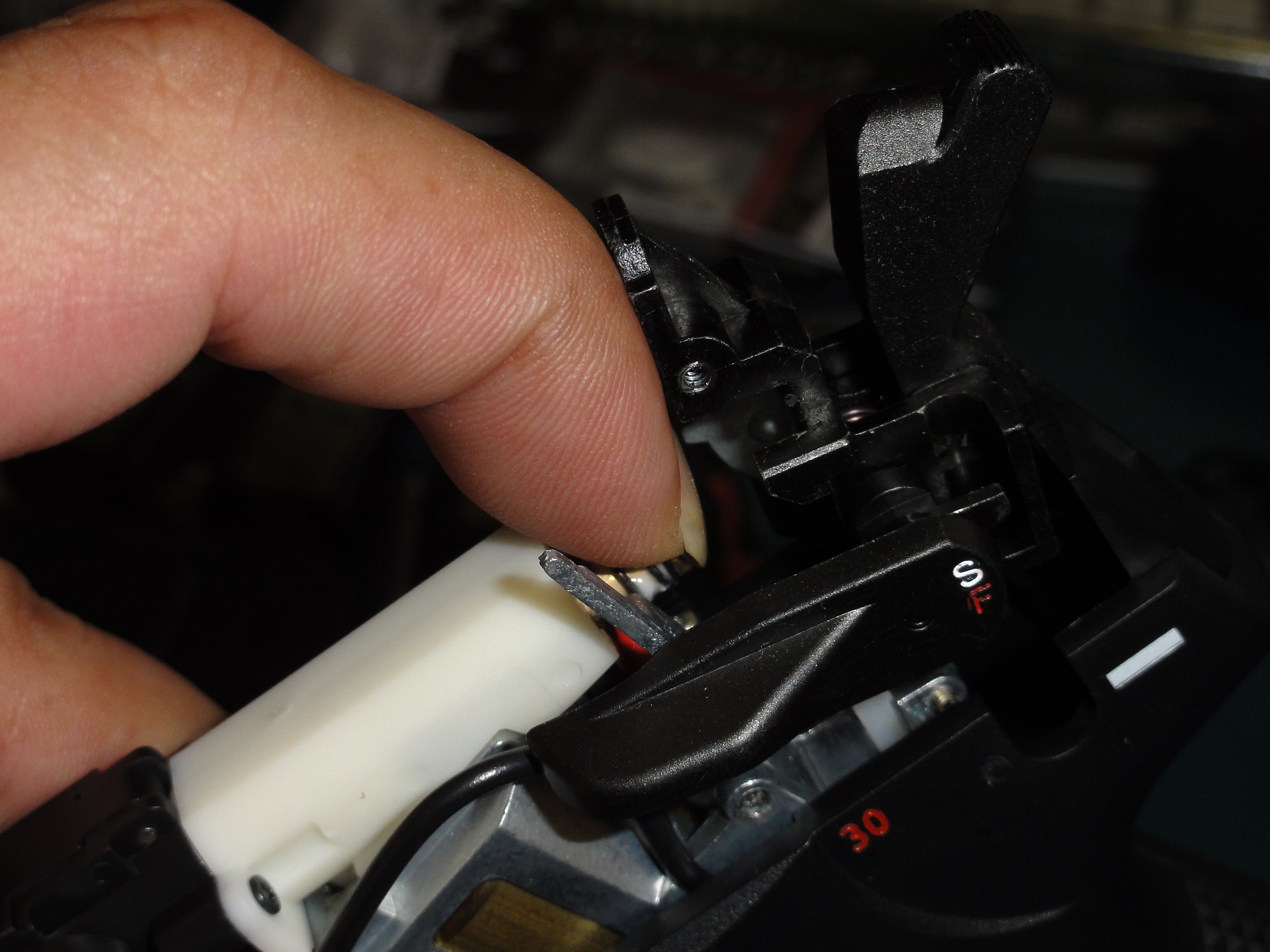 この後ハンマーユニット入れますがセフティレバーをハンマーブロックのつばの下に