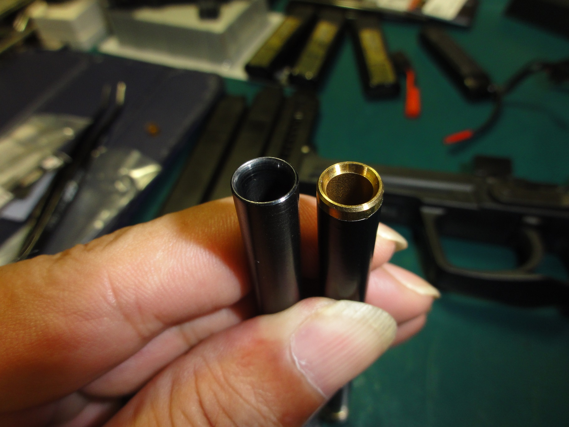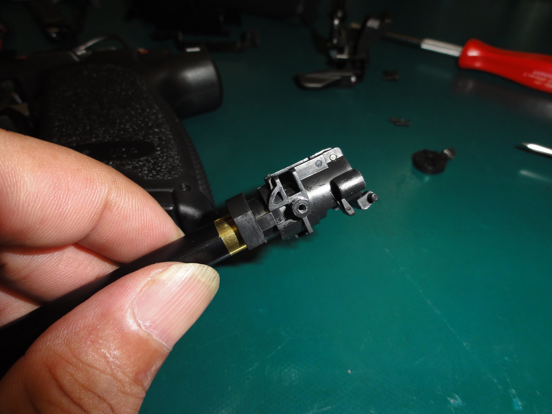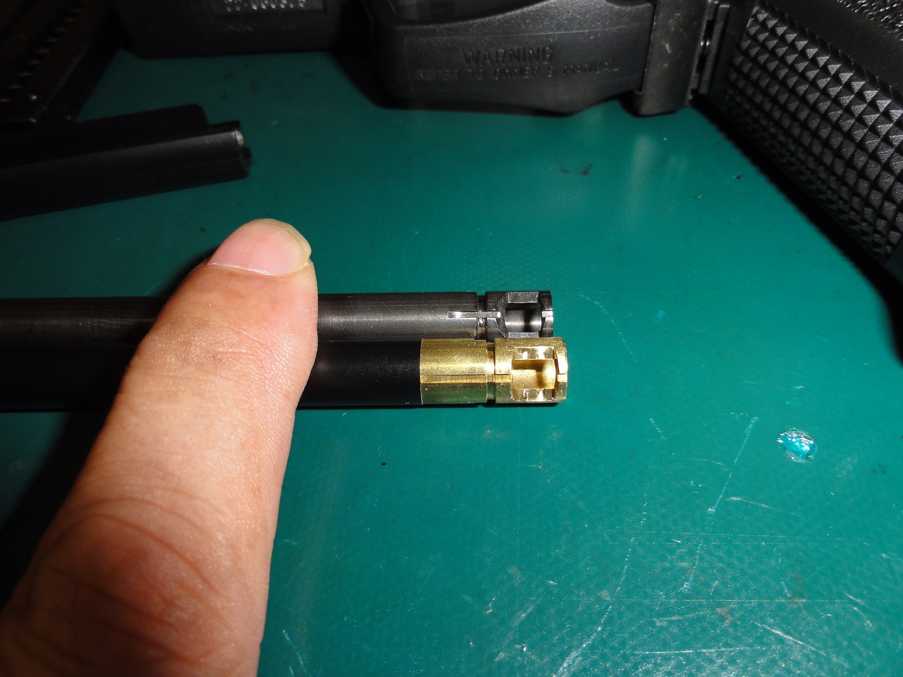 出口のテーパーもきれいです、パッキンをきちんと組、バレルをチャンバーに入れます