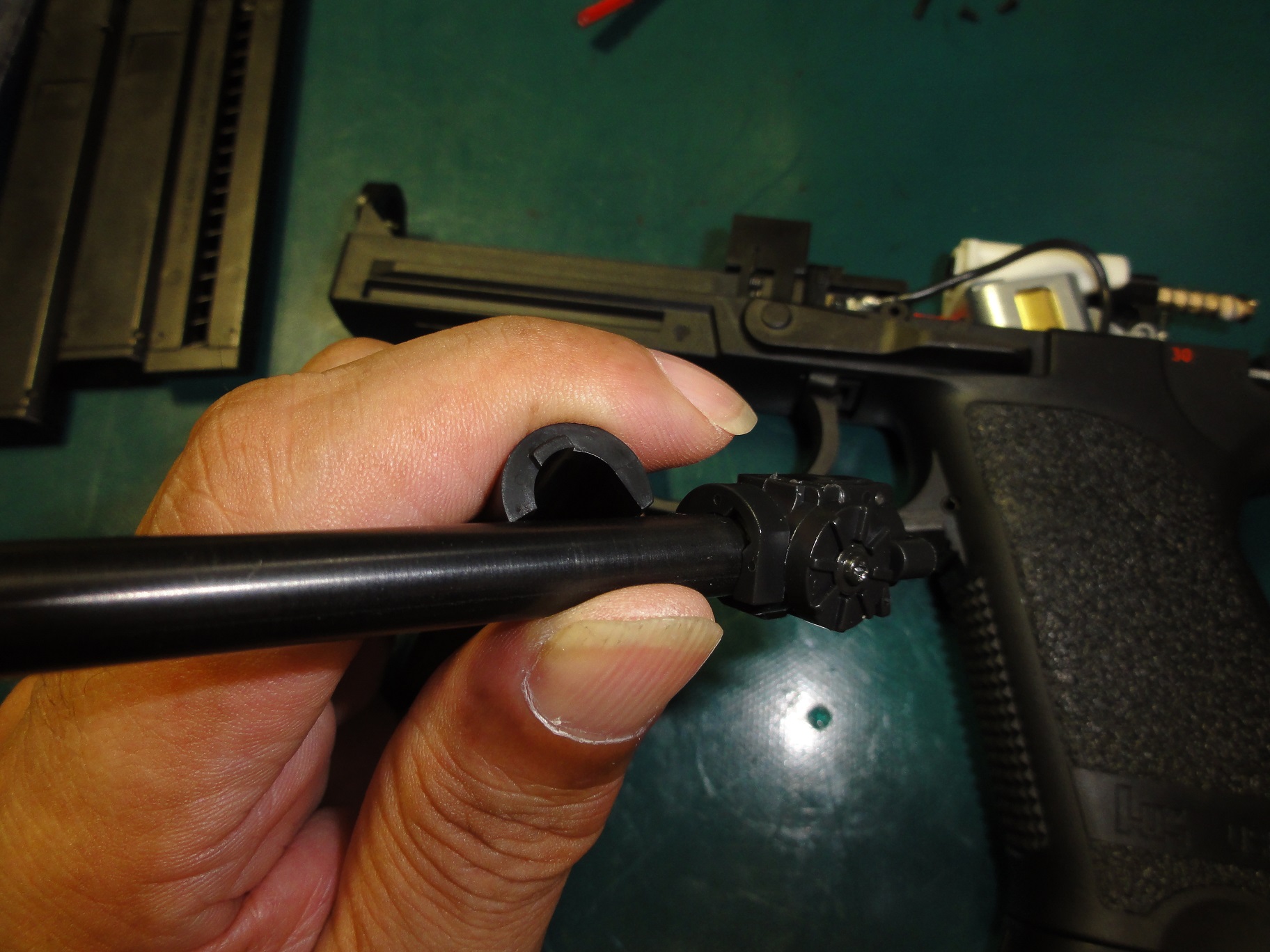 ローディングノズルスプリングを縮めます硬いので注意してください