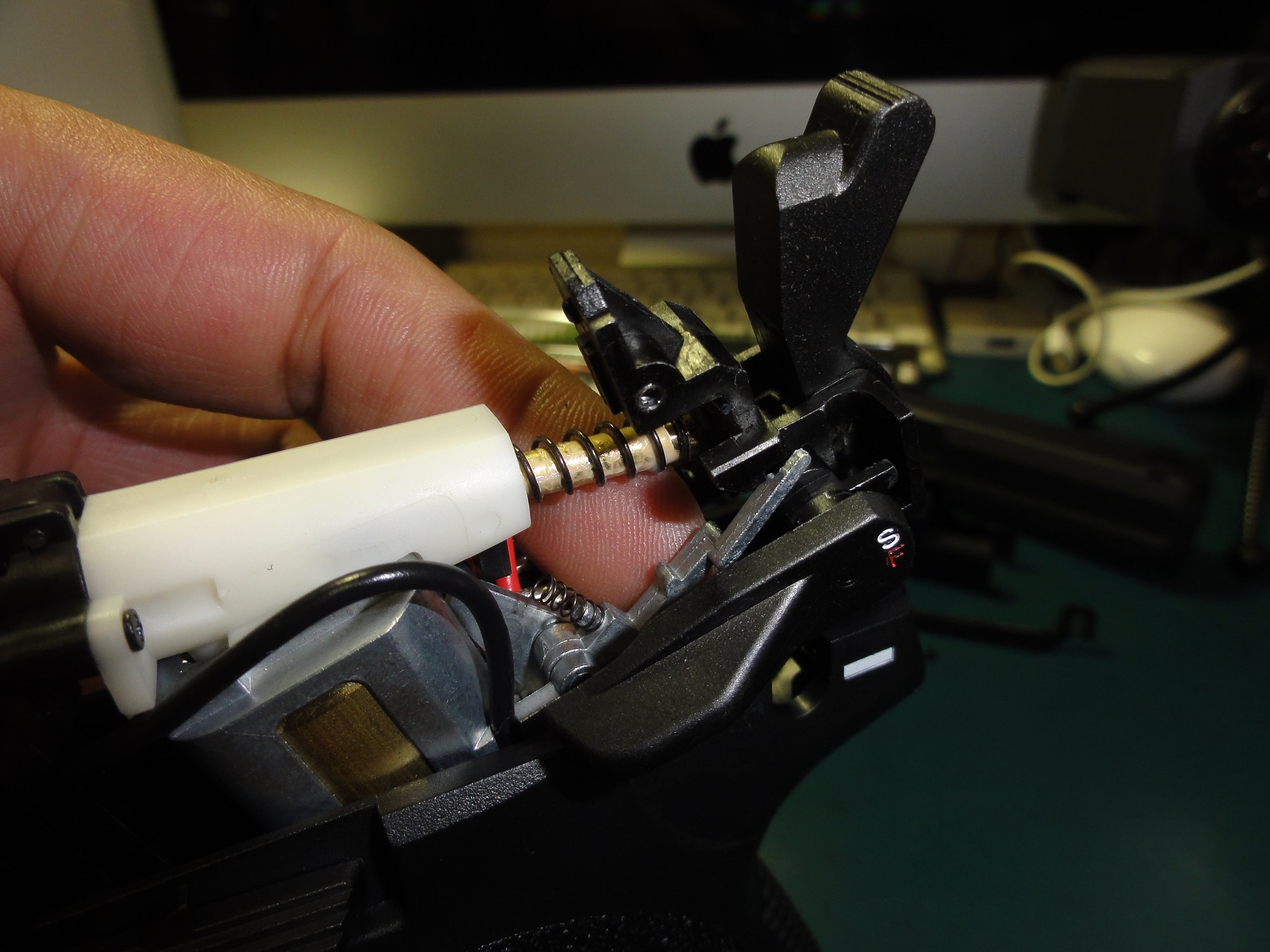 反対側のセフティレバーも小さなスプリングがあるので注意です。