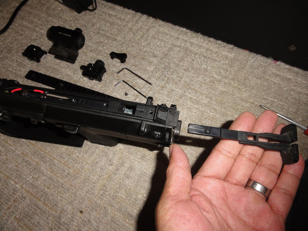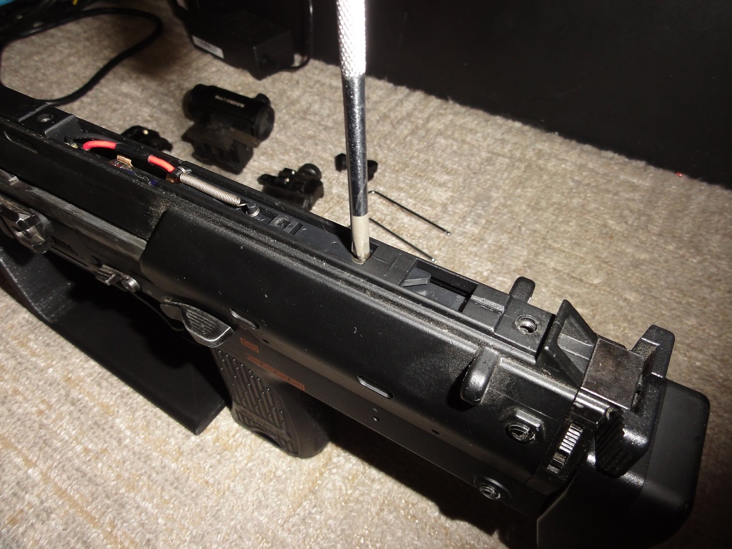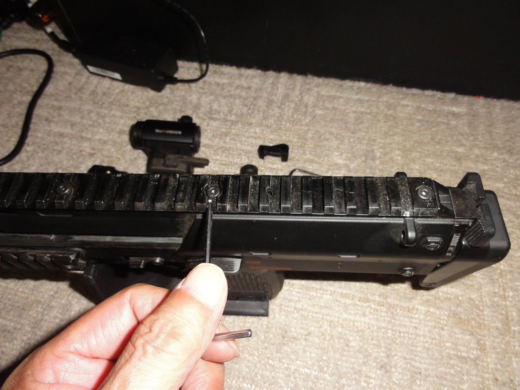 トップレイルの上のアイアンサイト・ドットサイトなどを外し