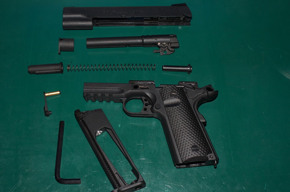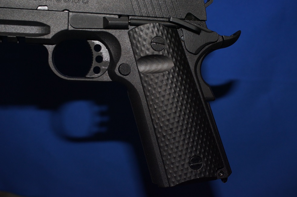 マズルフェイスは1911と同じ大型の45口径とライリングを表現している