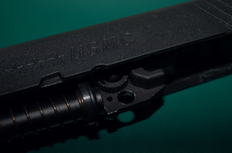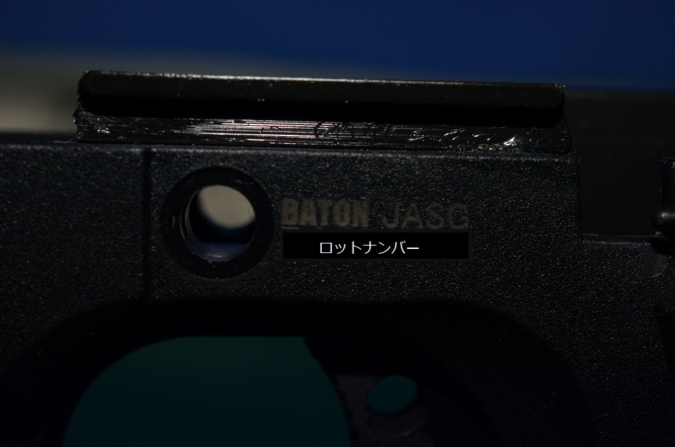 なんと銃本体のスライドストップの下にもBATONJASGロゴ+シリアルナンバーが入っていた