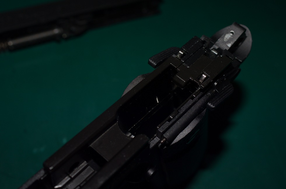 ハンマー奥のファイヤリングピンも再現されスプリングがあり稼働します。